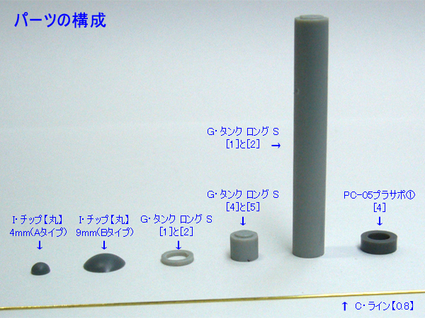 ではでは、まずは根性棒のパーツ構成で大部分を占める円筒形棒状の部分を[G・タンク ロング S]を使って作成しちゃいましょう。
