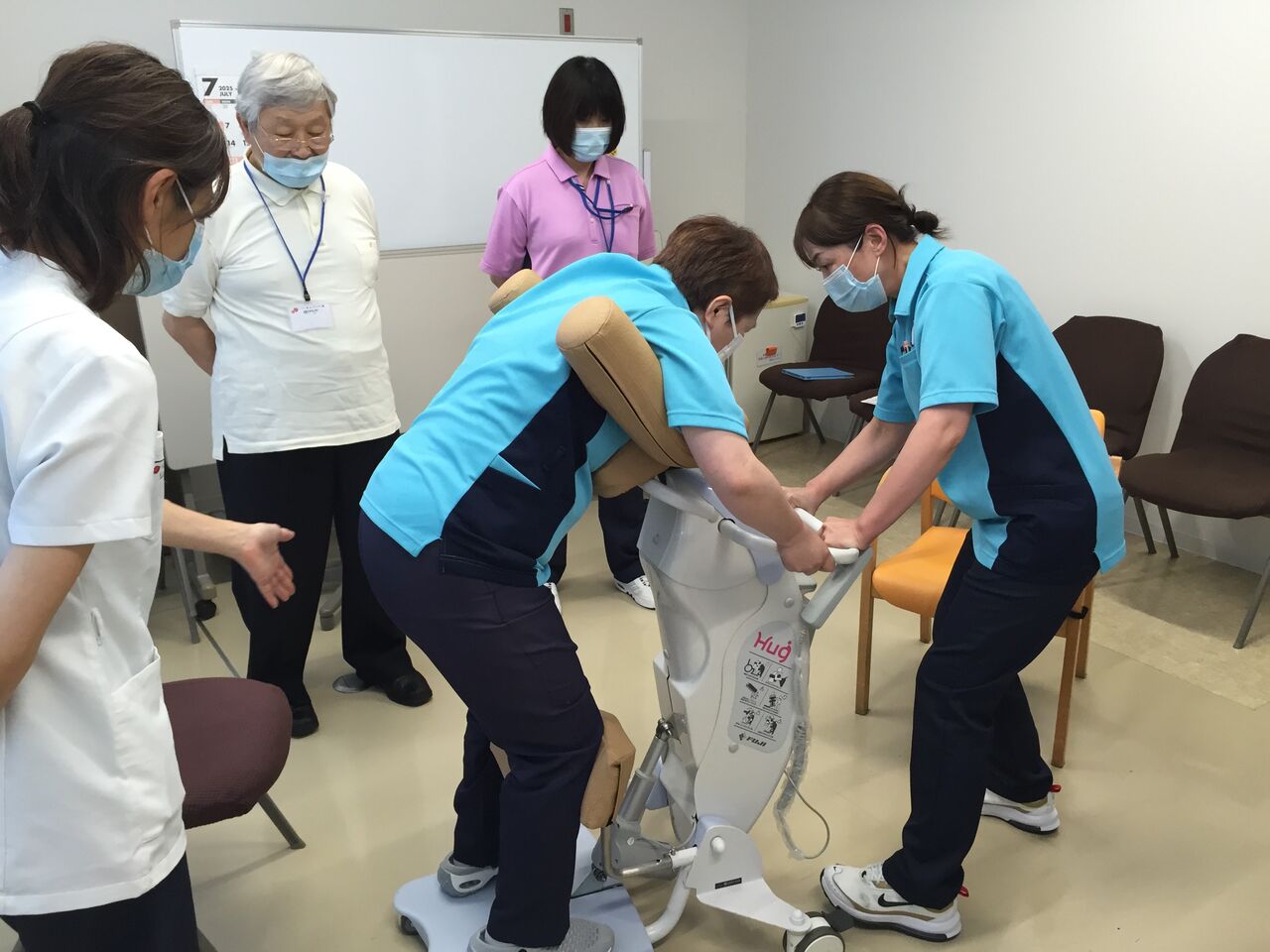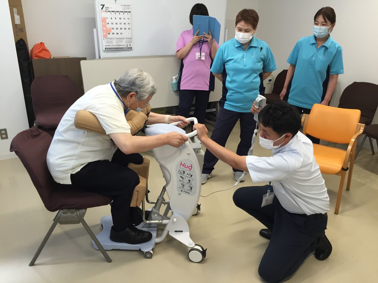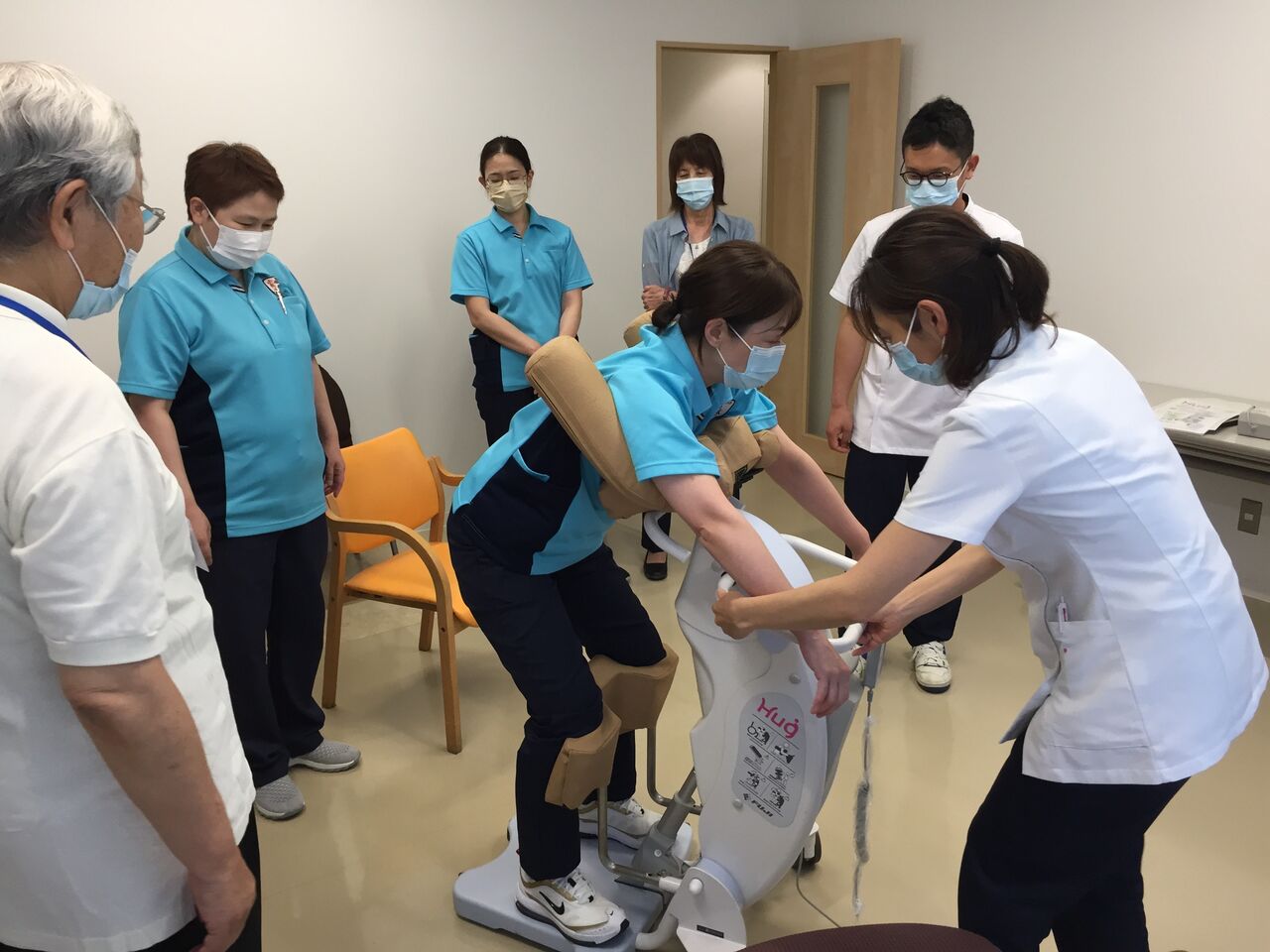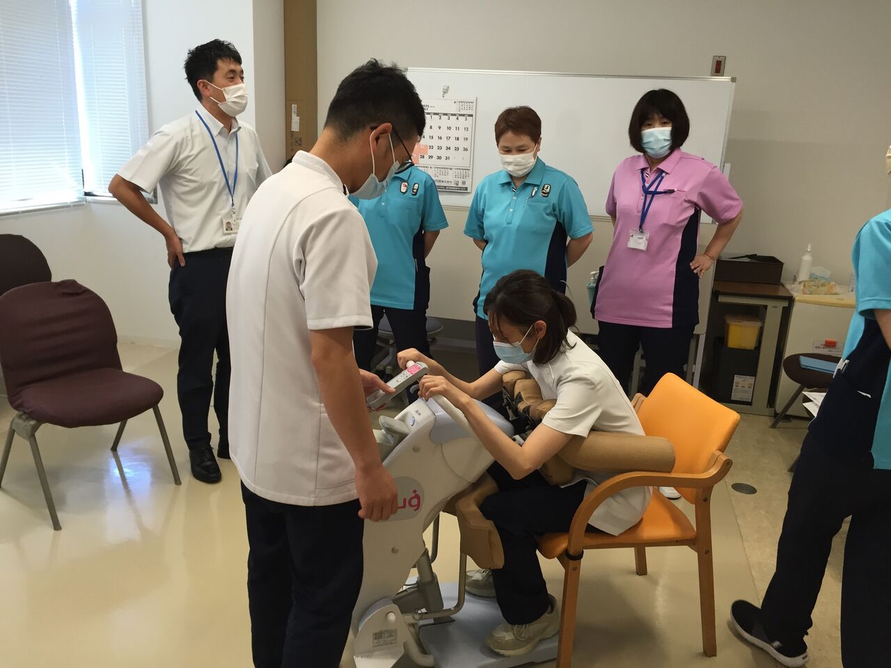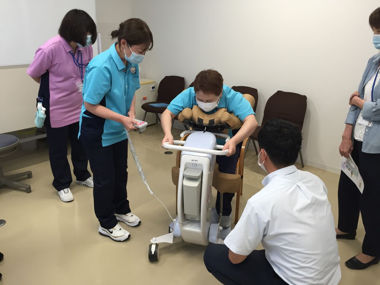 介護職場サポートセンターひろしま(通称:介サポひろしま)から介護ロボットの試用貸出を行ってもらいました。移乗支援ロボットの勉強会を行いました。