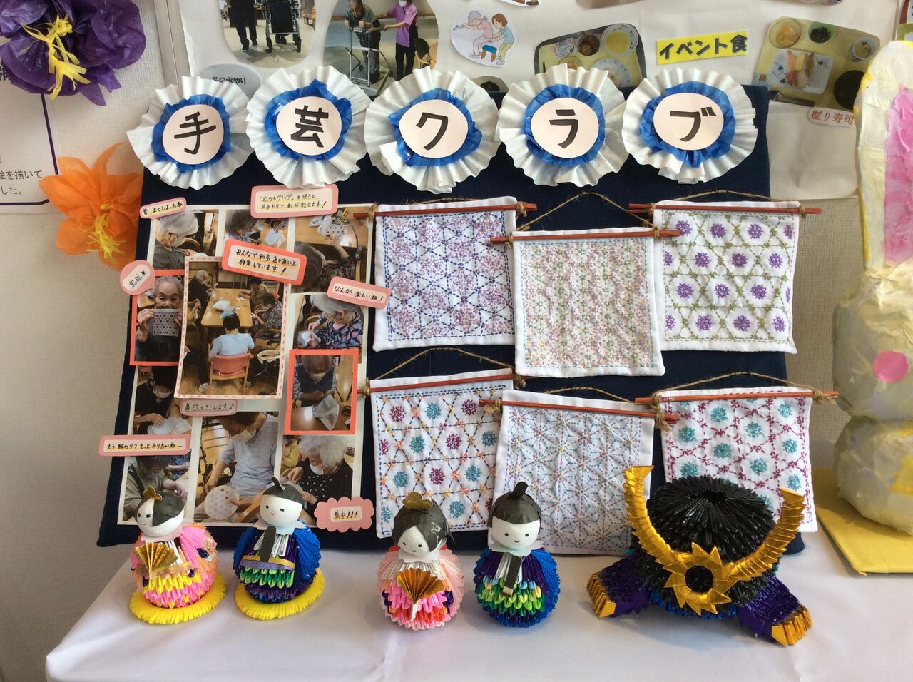 手芸クラブで作られた作品やペーパーブロックの作品です!