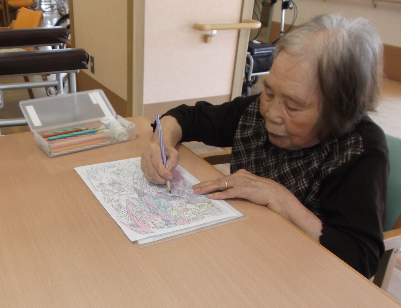 リハビリの中で療法士と練習したり、フロアでの空き時間にご自分のぺースで取り組んでいただいたりと様々です。