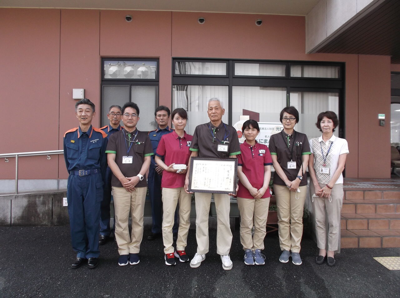 2月に当施設職員が送迎中に大野中央で起きた小火の初期消火にあたり