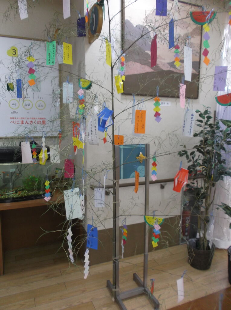 べにまんさくでも七夕飾りを飾っています