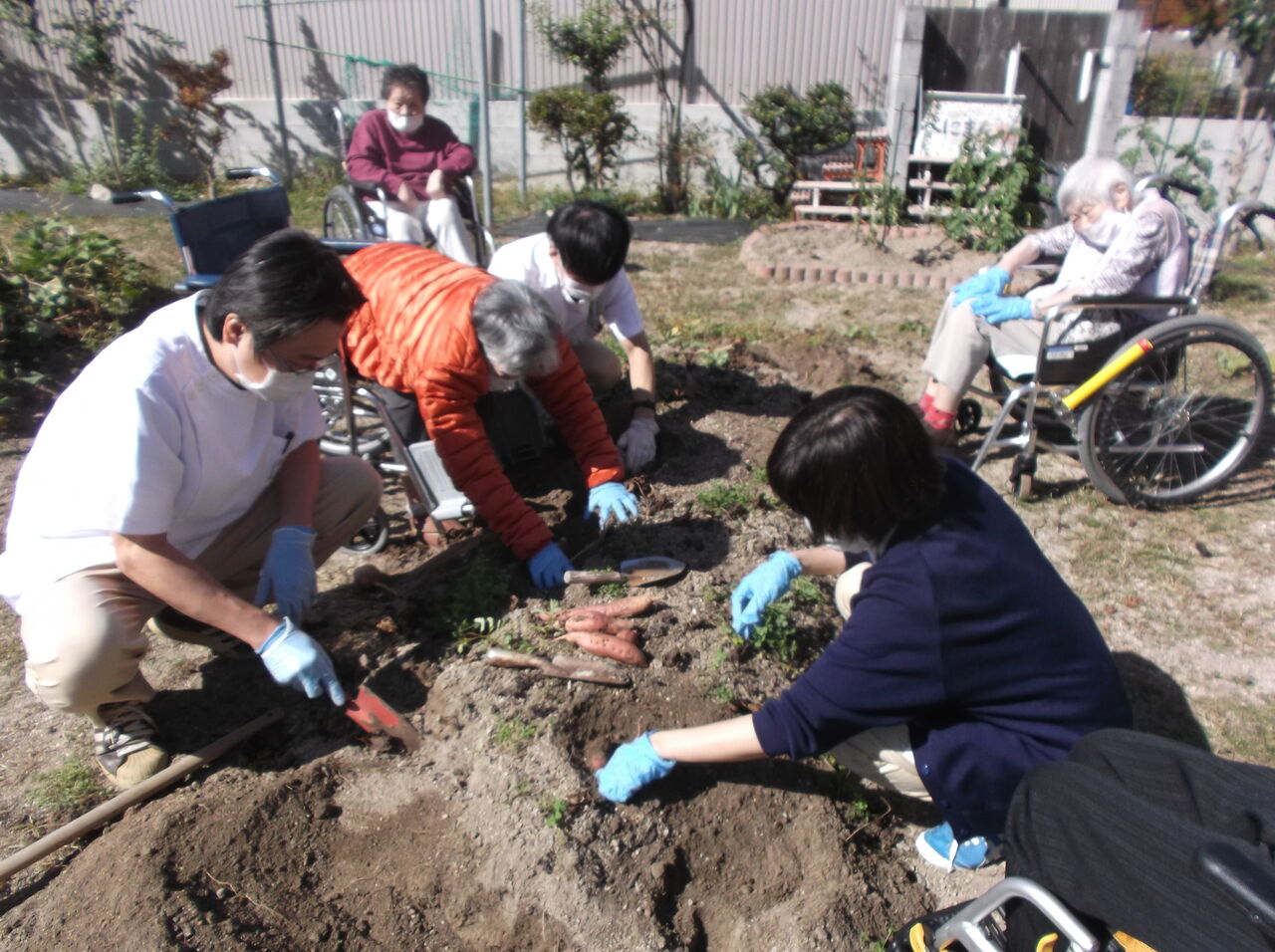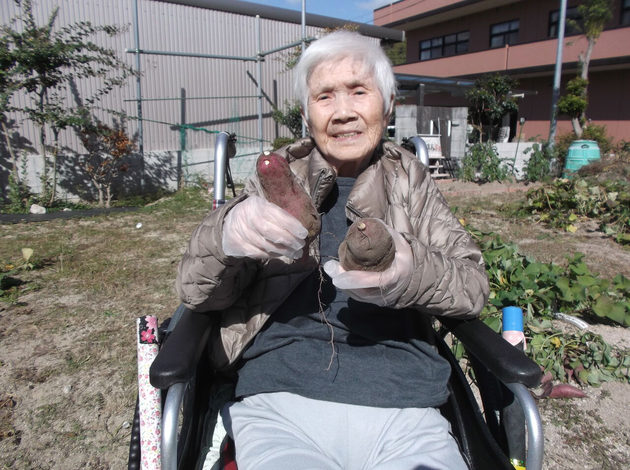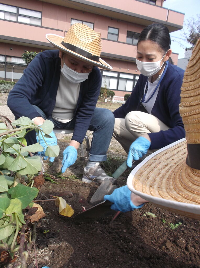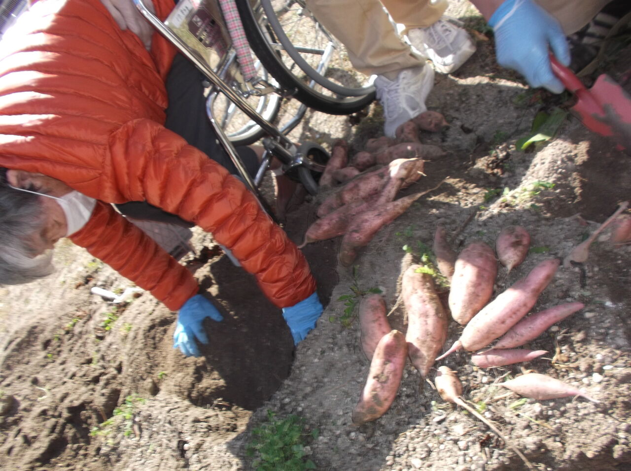 集中しすぎて車椅子から身を投げ出しそうになりながら芋を掘りました。