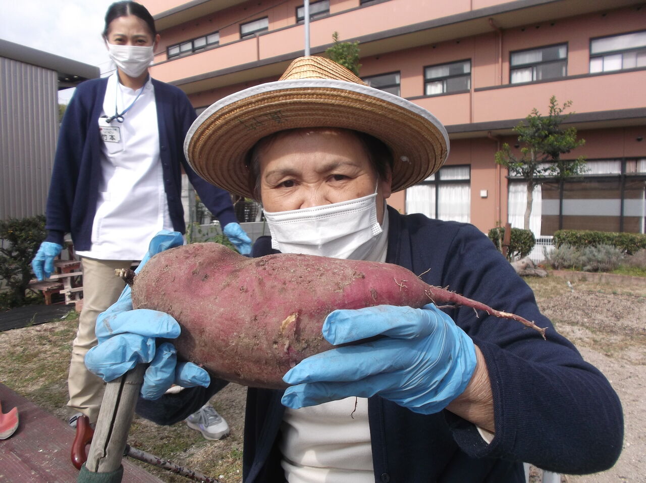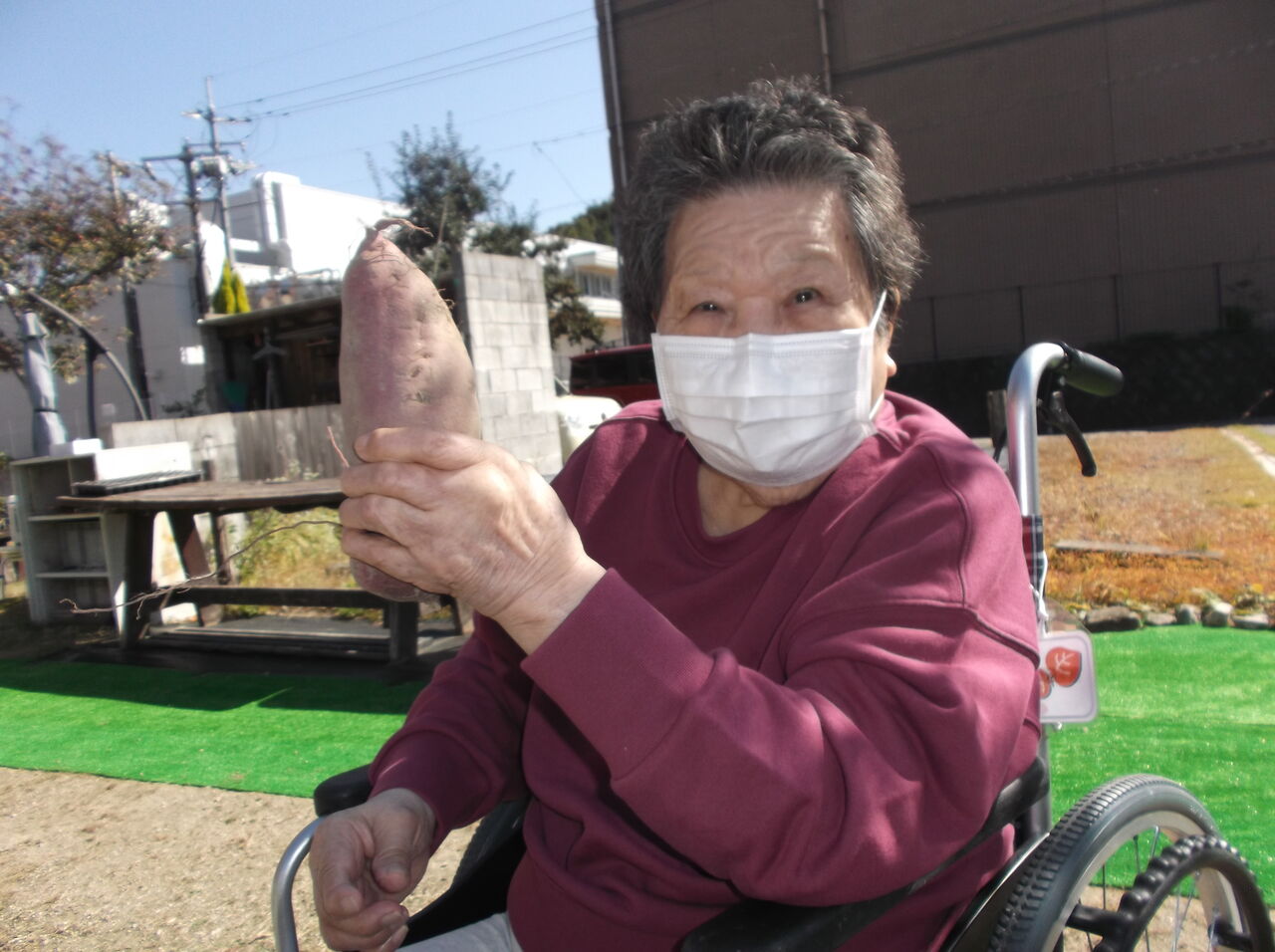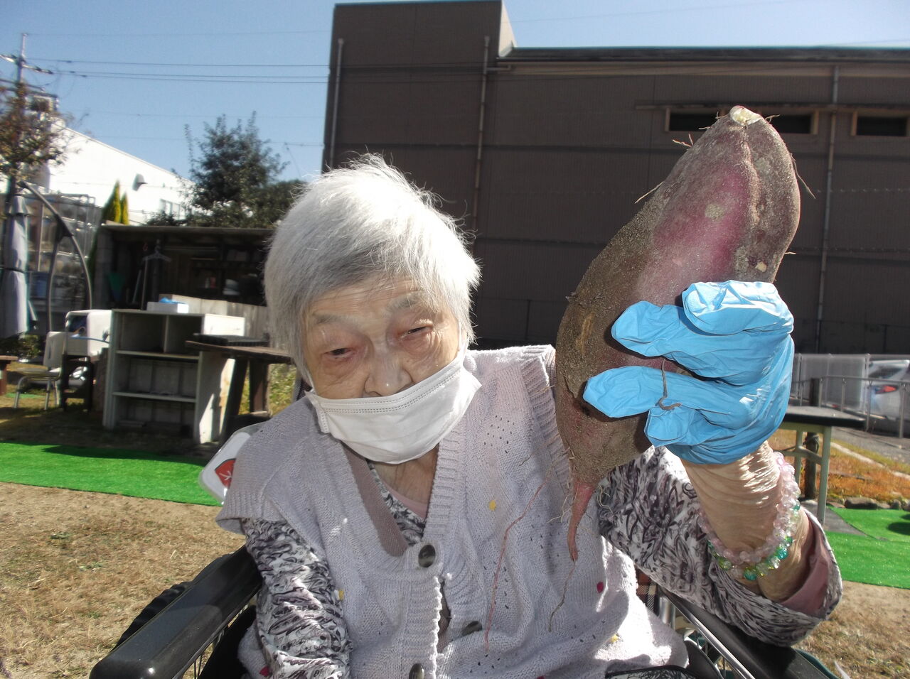 集中しすぎて車椅子から身を投げ出しそうになりながら芋を掘りました。