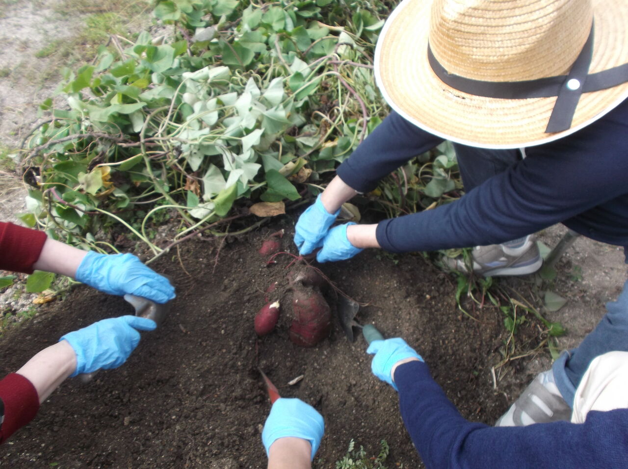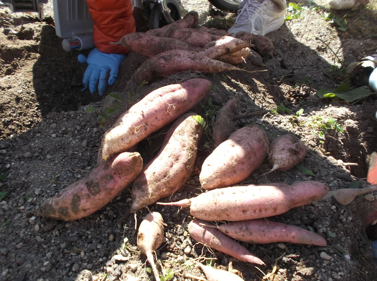 10/30にサツマイモを収獲しました。安納芋、シルクスイート、鳴門金時が穫れました。