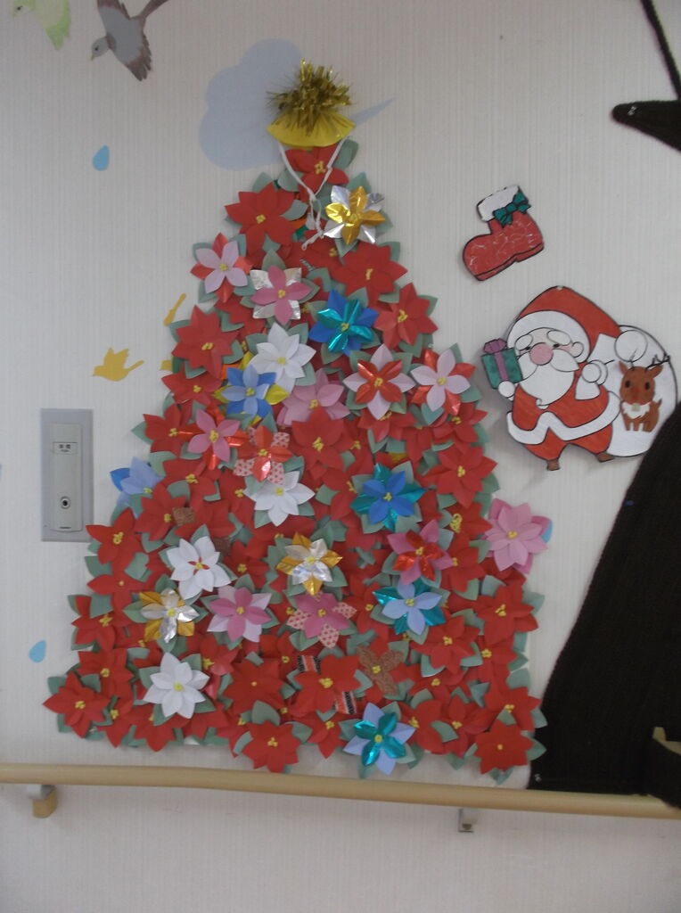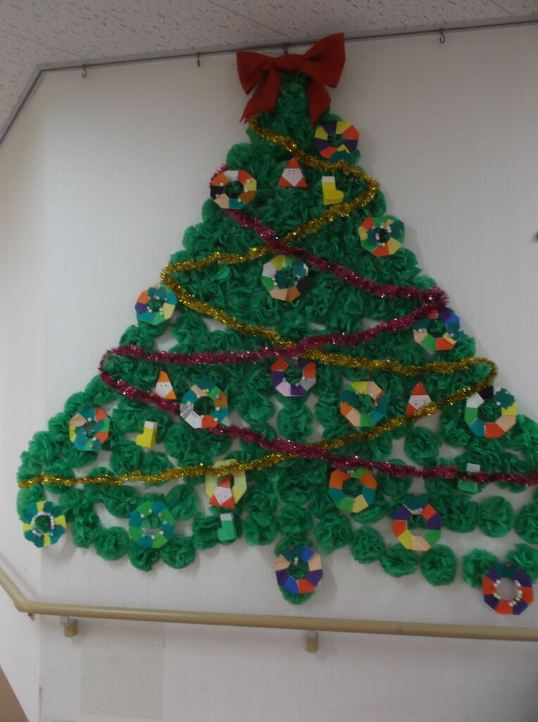 利用者さんに手伝って頂き、素敵なツリーが完成しました