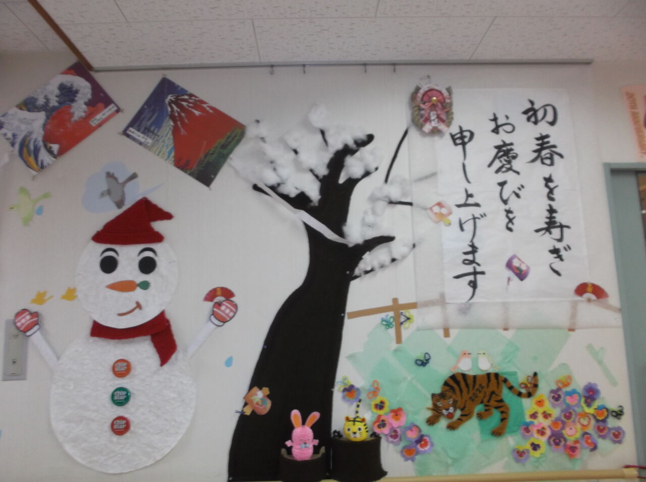 そんな中、12月最後は小さなクリスマス会を行ったり、各階の壁の作品をお正月バーションに変更したり、寄せ植えを行ったりと季節を感じながら過ごす事が出来ました