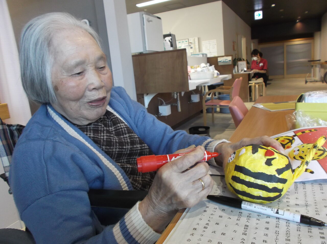 新年明けましておめでとうございます。今年は正月の寄せ植えの他にも、干支にちなんで虎の張り子を利用者様に作っていただきました感染症に気をつけ、今年も楽しく手作業等行っていければと思います今年もどうぞよろしくお願いいたします。皆さん真剣な表情で取り組まれていますね!とても綺麗な作品ができました!丁寧に虎の表情を描かれています可愛らしい虎ができました!
