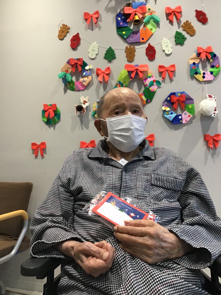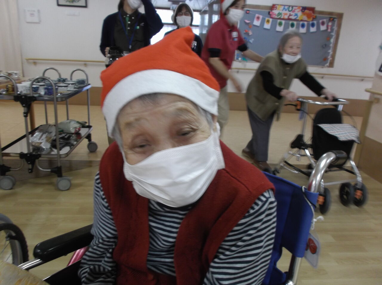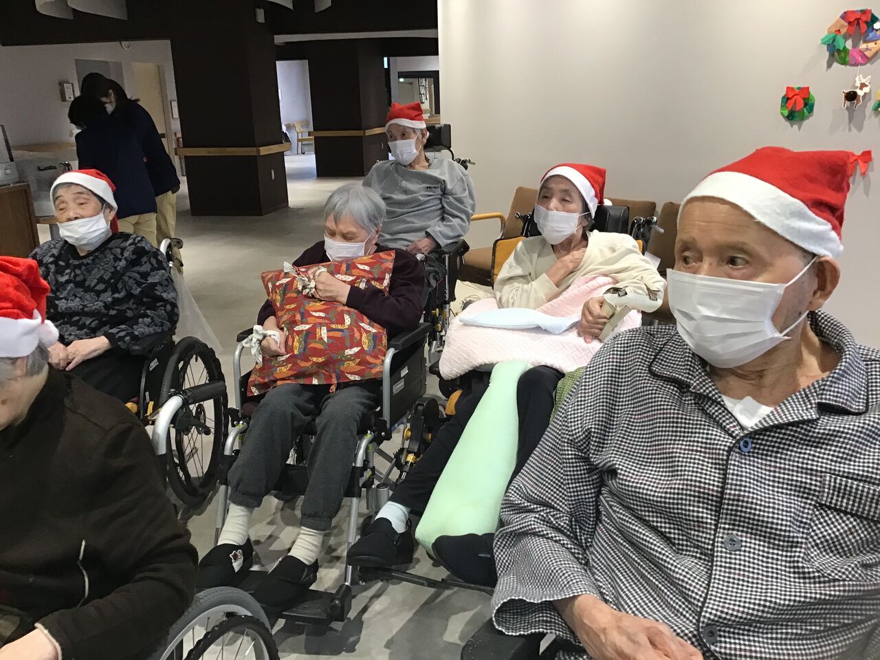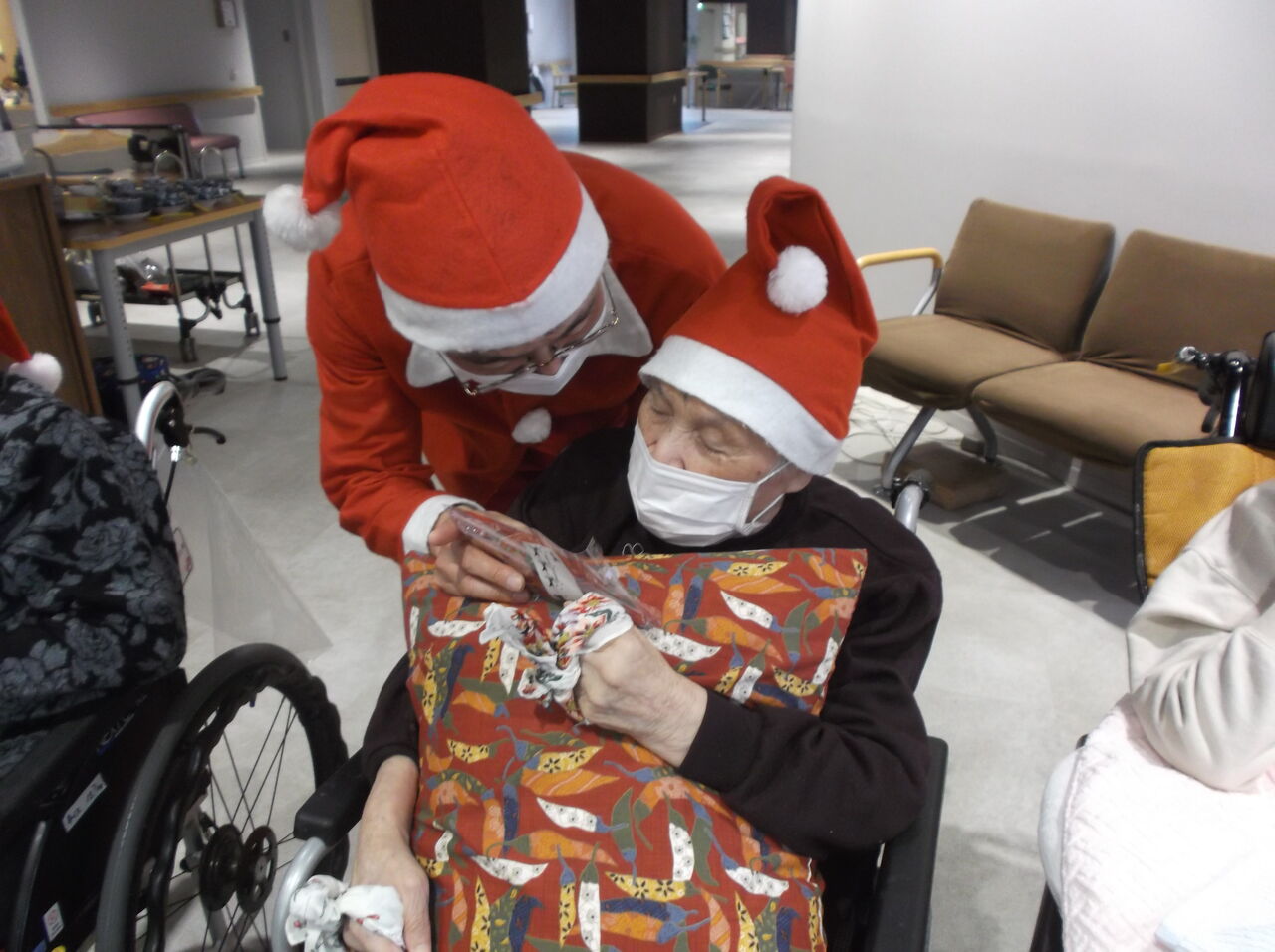 サンタさんからプレゼントをもらって皆笑顔いっぱい、興味津々です。