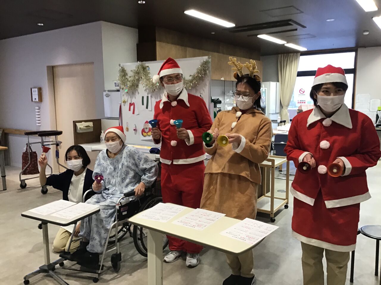 職員によるハンドベルやフルートやクラリネットの演奏会を各階楽しまれました。