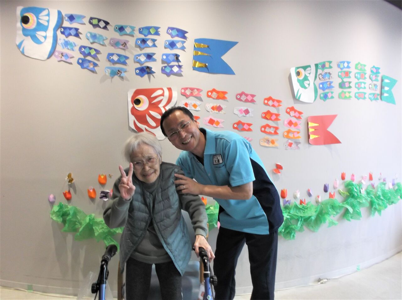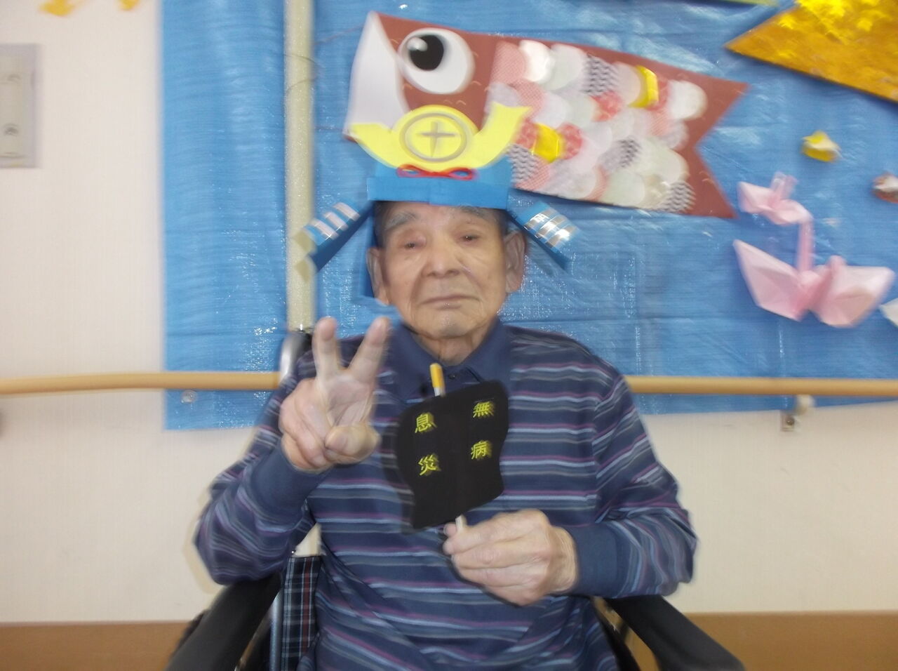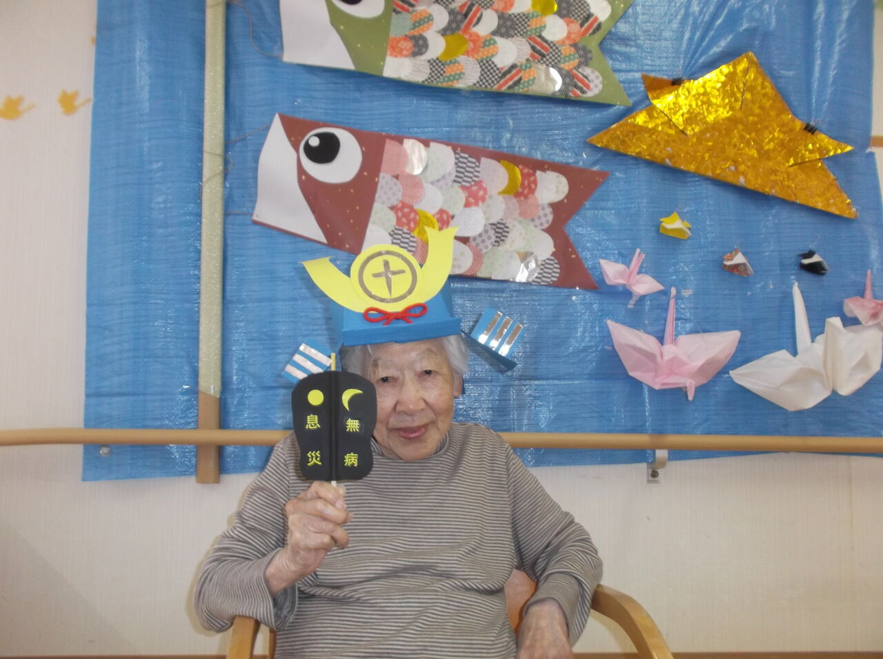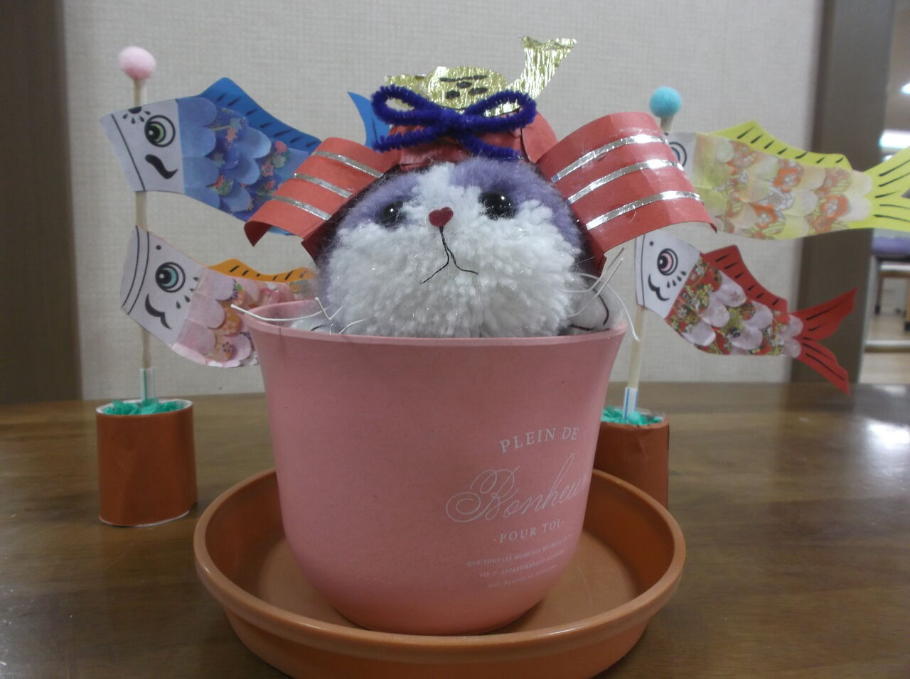 当施設では、端午の節句に合わせてご利用者様と兜や鯉のぼりなどの作品を作りました