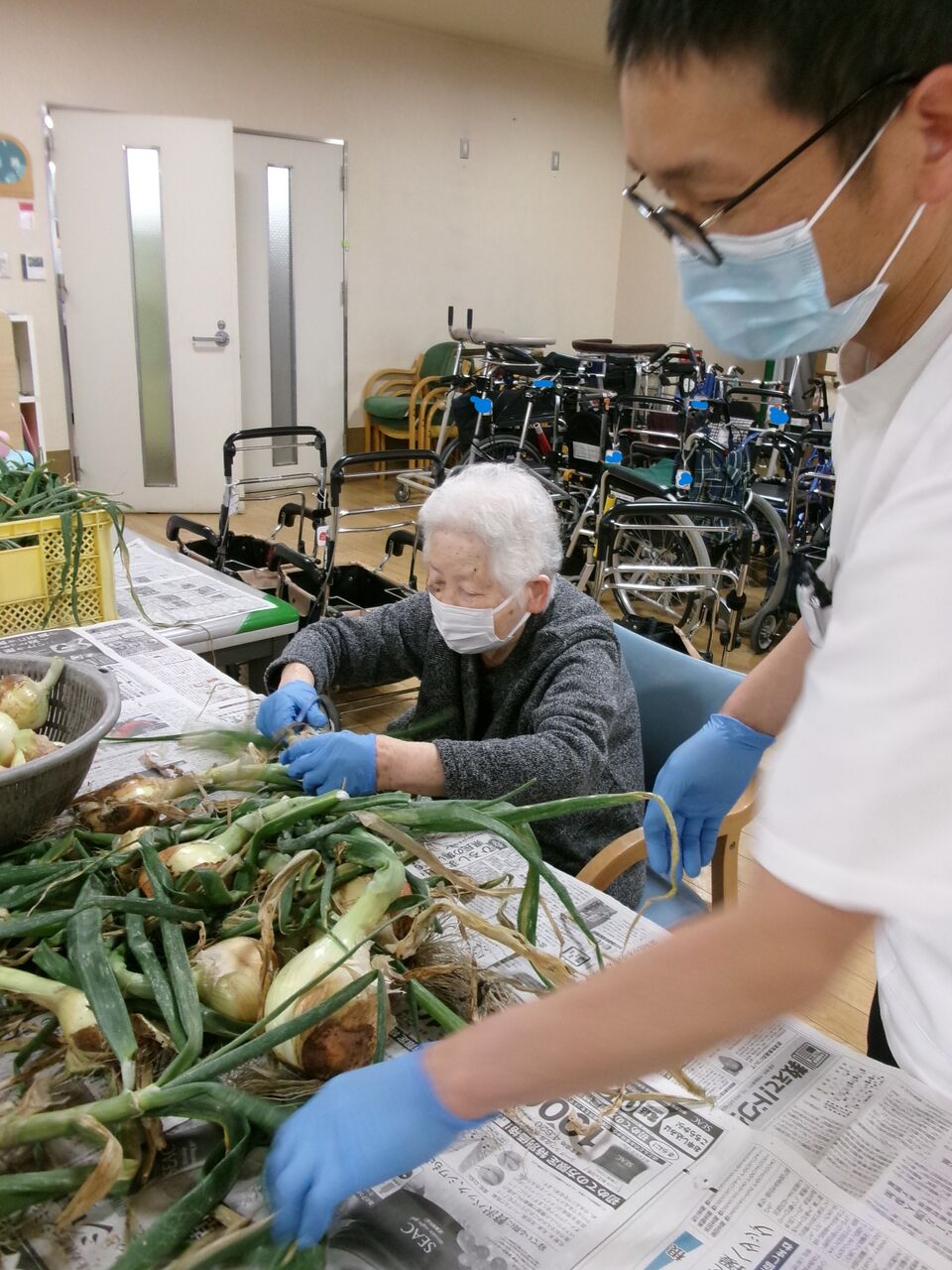 玉ねぎの香りが通所内に漂います