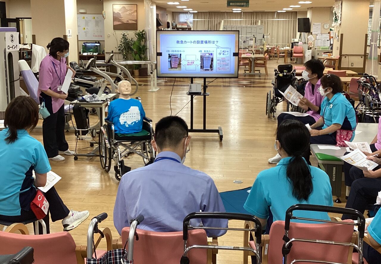 今回は、リハビリ・ケアマネジャーが参加し体力測定と転倒予防の体操を行いました