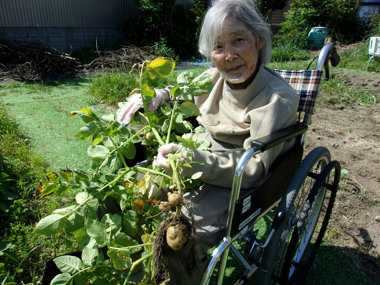 利用者様に種芋植え、収獲、袋詰めを手伝っていただきまして、