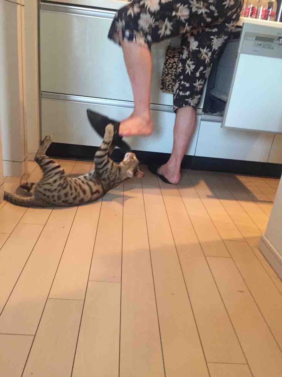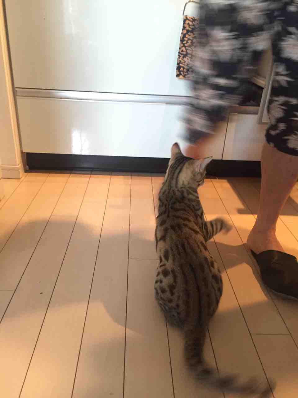 6月287:59 お父さんは獲物にゃ コメント数:2 コメント カテゴリ:ベネリおうちごはん by benelli0105 昨夜はお家の中でBBQ風に。メインはラム肉とソーセージですが、遠赤外線で焼いているので、お野菜がすごく水分を保ててジューシーでした。それと暑いので、冷奴。朝ごはんは、夜のうちにお父さんが圧力鍋で鶏ガラ出汁をとっておいてくれたので、卵スープ。ふわふわ卵とお出汁しっかりで寝起きの身体に沁みます。美味しかった。今日も朝から元気になりました。ごちそうさまでした。そんな今朝の調理風景。お父さんの足に執拗に迫るBenelli 。獲物発見にゃ!本人?本猫?はじゃれて甘噛みのつもりですが、かなり痛いです。たまらず、逃げるお父さん。待つのにゃ!お父さんに逃げられて、地味顔になってるBenelli 。ぶちゃいくだけど、可愛い(*´∀`)まだお父さんを狙ってます。獲物、再発見にゃ。お母さんに気づいたBenelli 。何にゃ?獲物2匹目かにゃ?最後はお父さんに抱っこされて、落ち着いてました。Benelli は噛んだのに、お父さん優しいね〜。