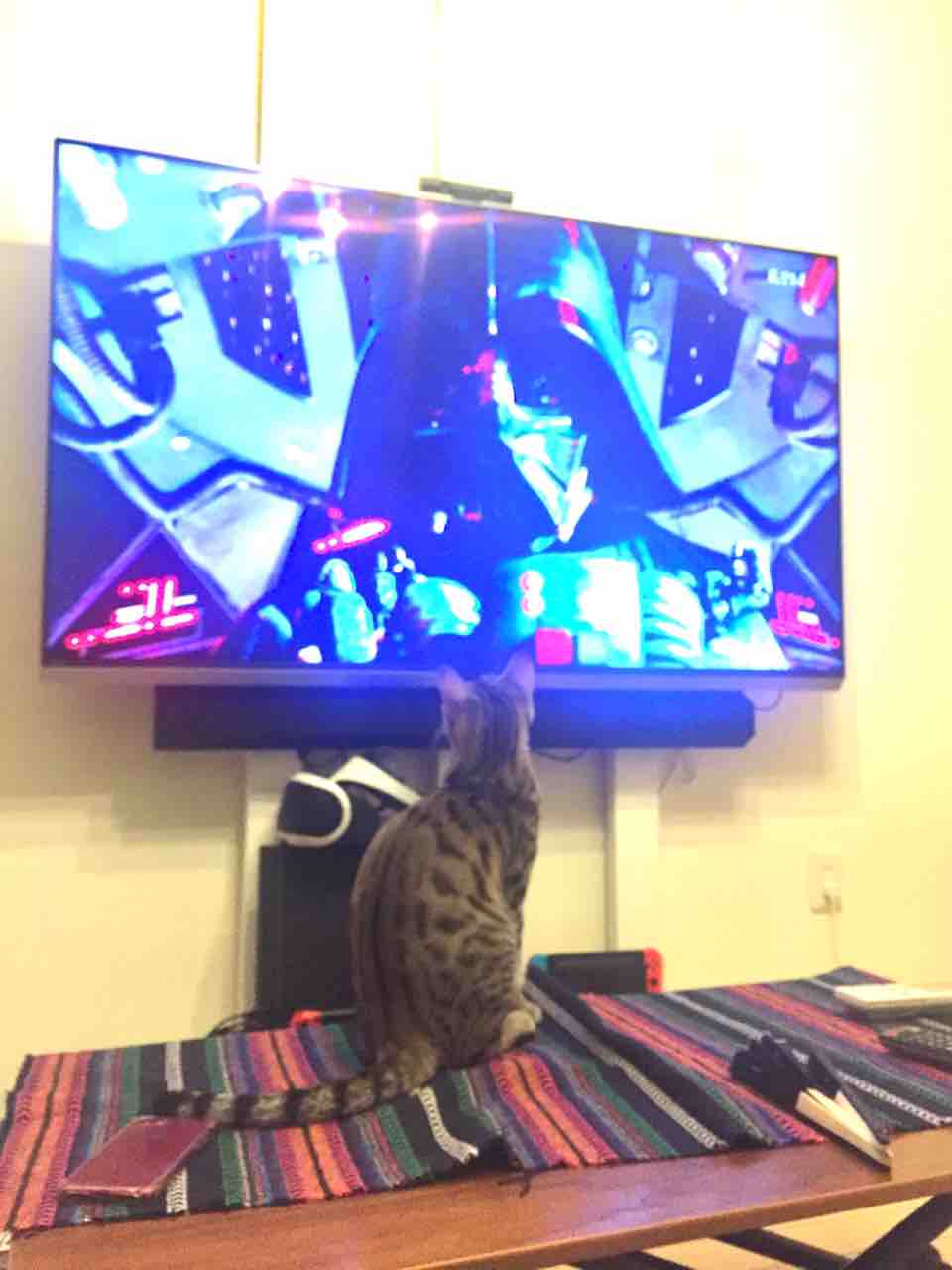 6月307:11 フォースと共にあらんことをにゃ コメント数:0 コメント カテゴリ:ベネリ by benelli0105 昨夜は「スターウォーズ エピソード4 新たなる希望」を地上波で放映してました。お母さん小さい頃から、何度も何度も観ていて大好きな映画です。気づいたらBenelli がかぶりつきで観てました。僕もジェダイの騎士になるにゃ。フォースと共にあらんことをにゃ!味方が敵に撃たれてしまうシーンでは、Benelli もちょっと怯えて後ろに後ずさり。やられてしまうにゃ!こわいにゃ!ダースベーダーにも興味津々。黒ヘルメットおやじ、迫力あるにゃ。前回、「ブレードランナー2049」もかぶりつきで鑑賞してたので、もしかしたらBenelli はSF映画好き⁈