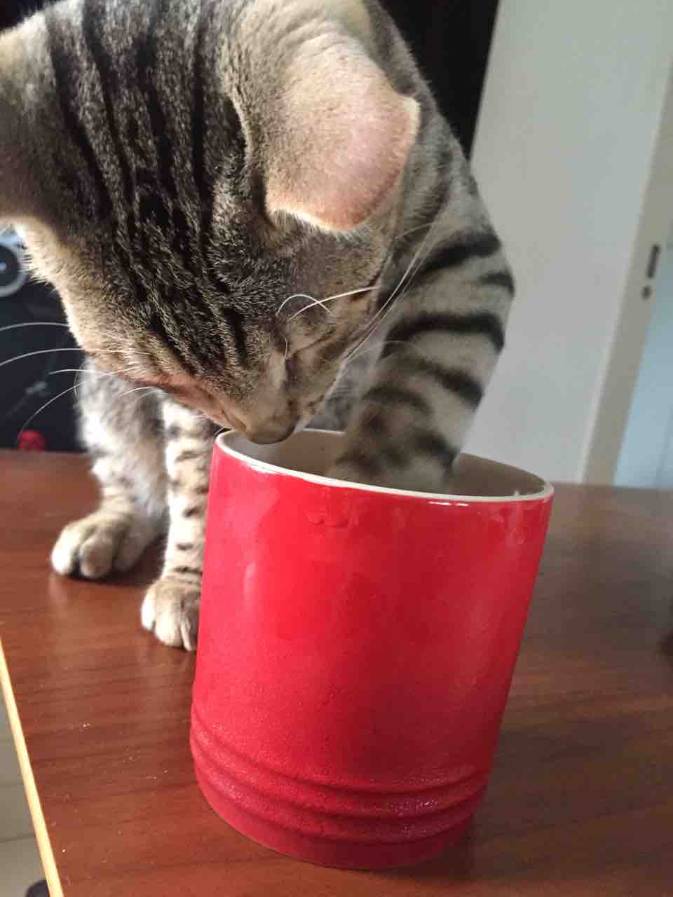 6月278:22 犯ニャンはお前だ! コメント数:0 コメント カテゴリ:ベネリ by benelli0105 周囲の確認は抜かりなくにゃ。キョロキョロにゃ。まずはお手てでちょんちょんと触ってみるにゃ。味見にゃ。なかなかうにゃい(うまい)。(中身はノンカフェインのコーン茶でした。)よし、本格的にゴクゴクにゃ。まずいにゃ!見つかったにゃ!(悪いお顔してますね〜 笑。)現場から逃走するにゃ。すたこらさっさにゃ。テーブルには美味しいものがのっている!と知っているBenelli 、とりあえず何にでも興味を示して食べてみようとするので困ります。ただ、そんなBenelli のおかげで?食事後の片付けが早く綺麗にできる利点はありますね。