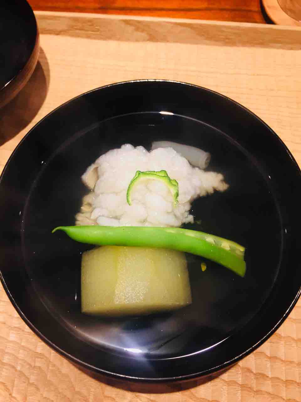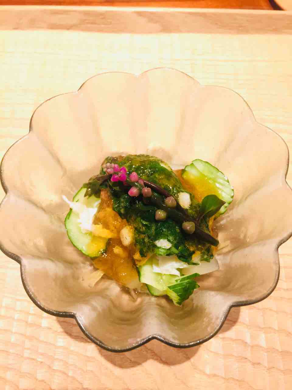 上に乗っているツルムラサキが思った以上に味わい深くてさっぱり。