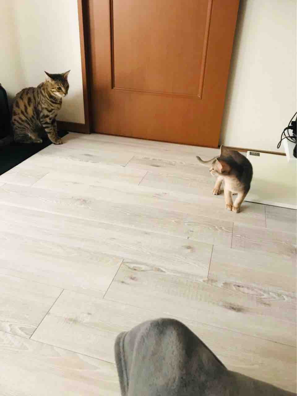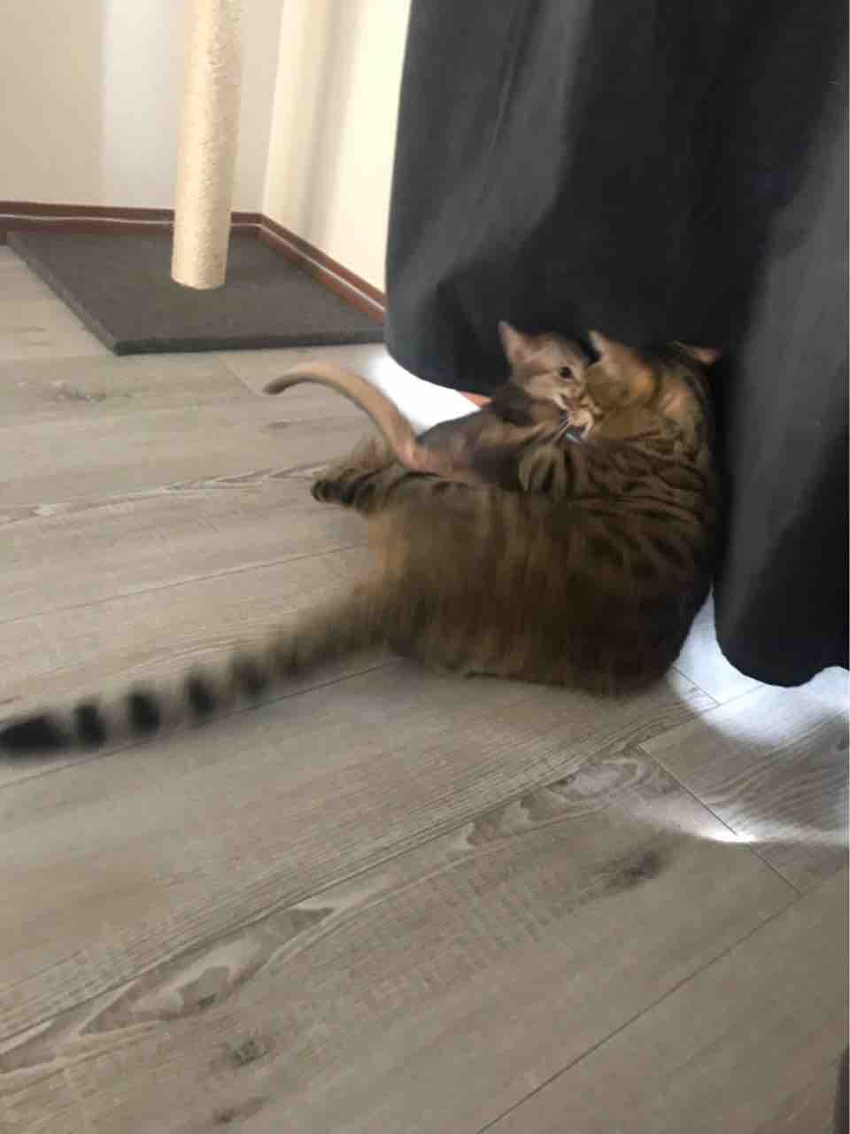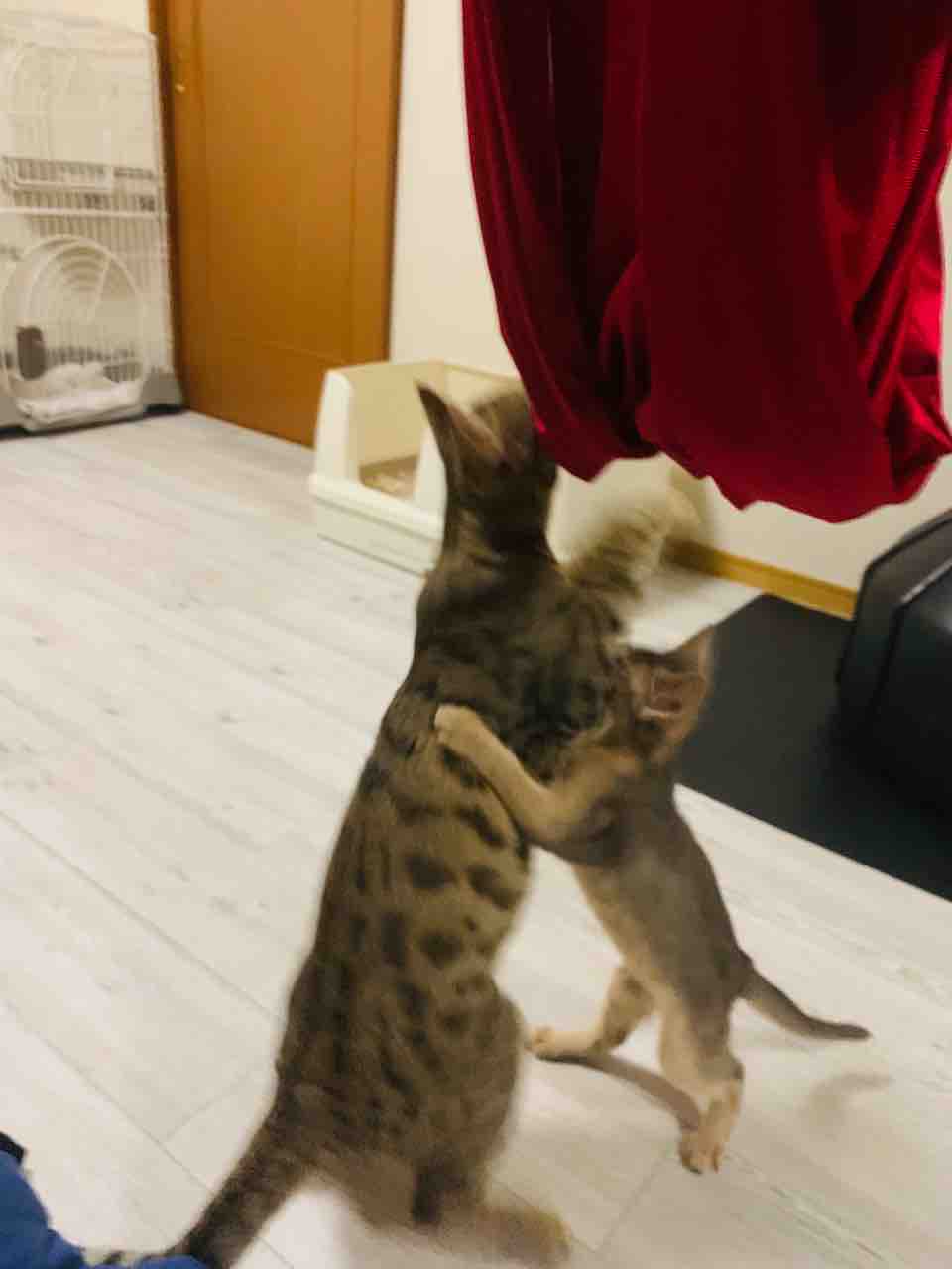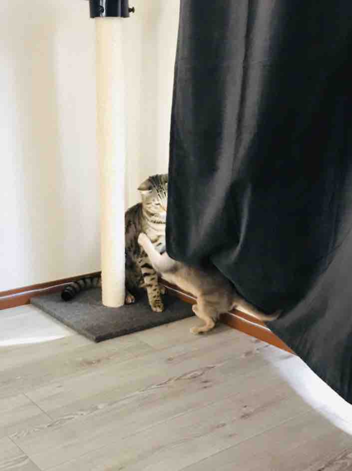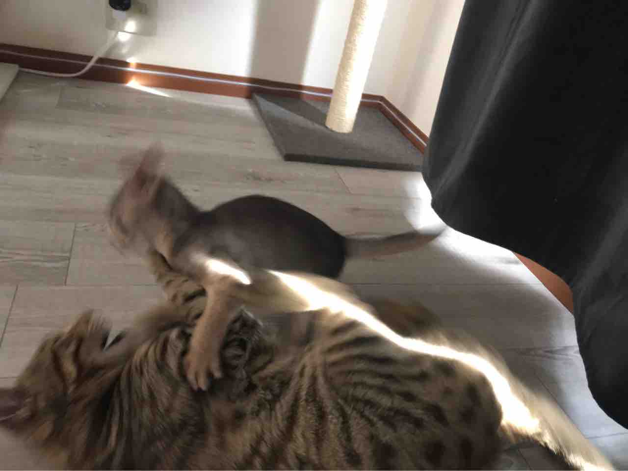 一緒に寝てる時以外は、取っ組み合ったり走り回ったりしてることが多いです。