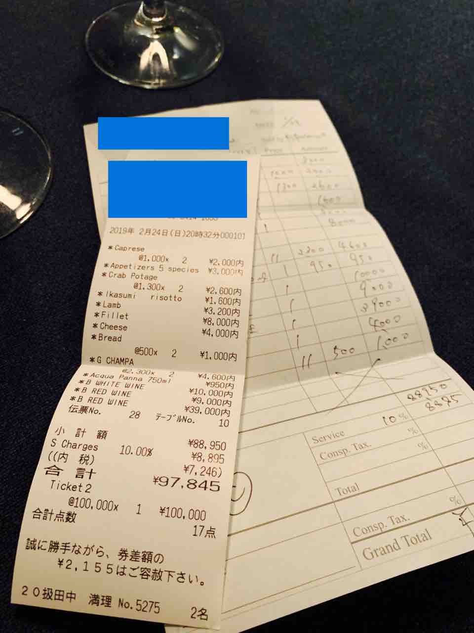 10万円の名残りで美味しいディナーと頭隠して…