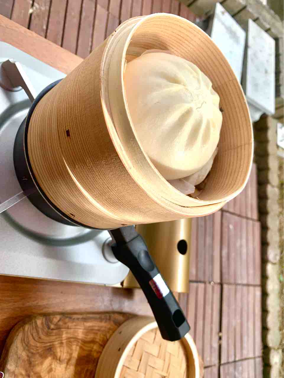 カセットコンロを使ってアウトドア点心、ほかほか肉まんを蒸しました。