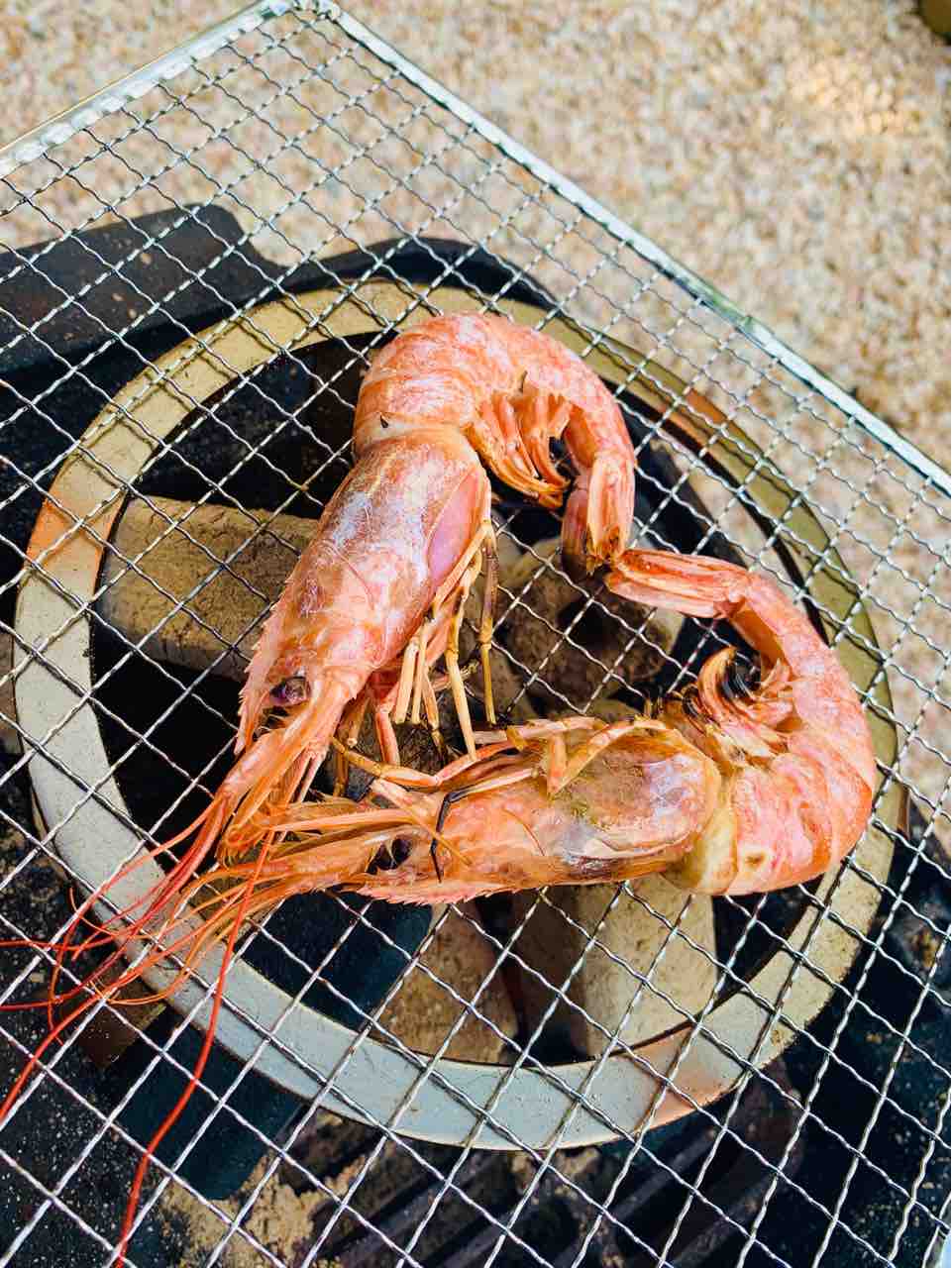 海老をハート型に炭火焼きしました。