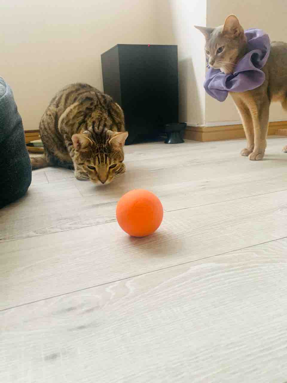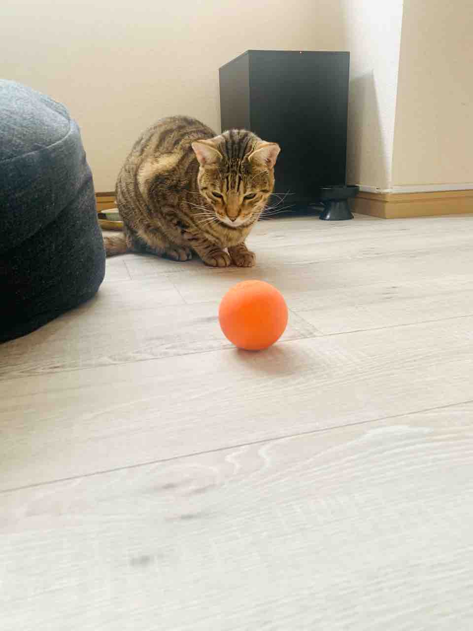 重さがそこそこあるので、転がりだすとゆっくりどこまでも転がっていくこのボール。