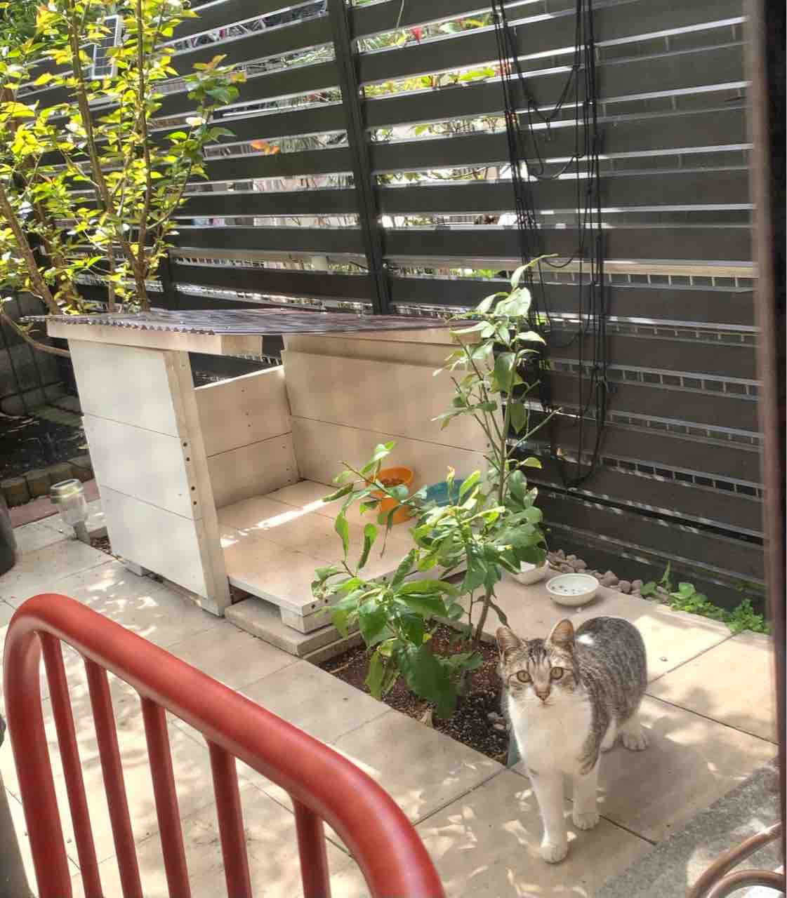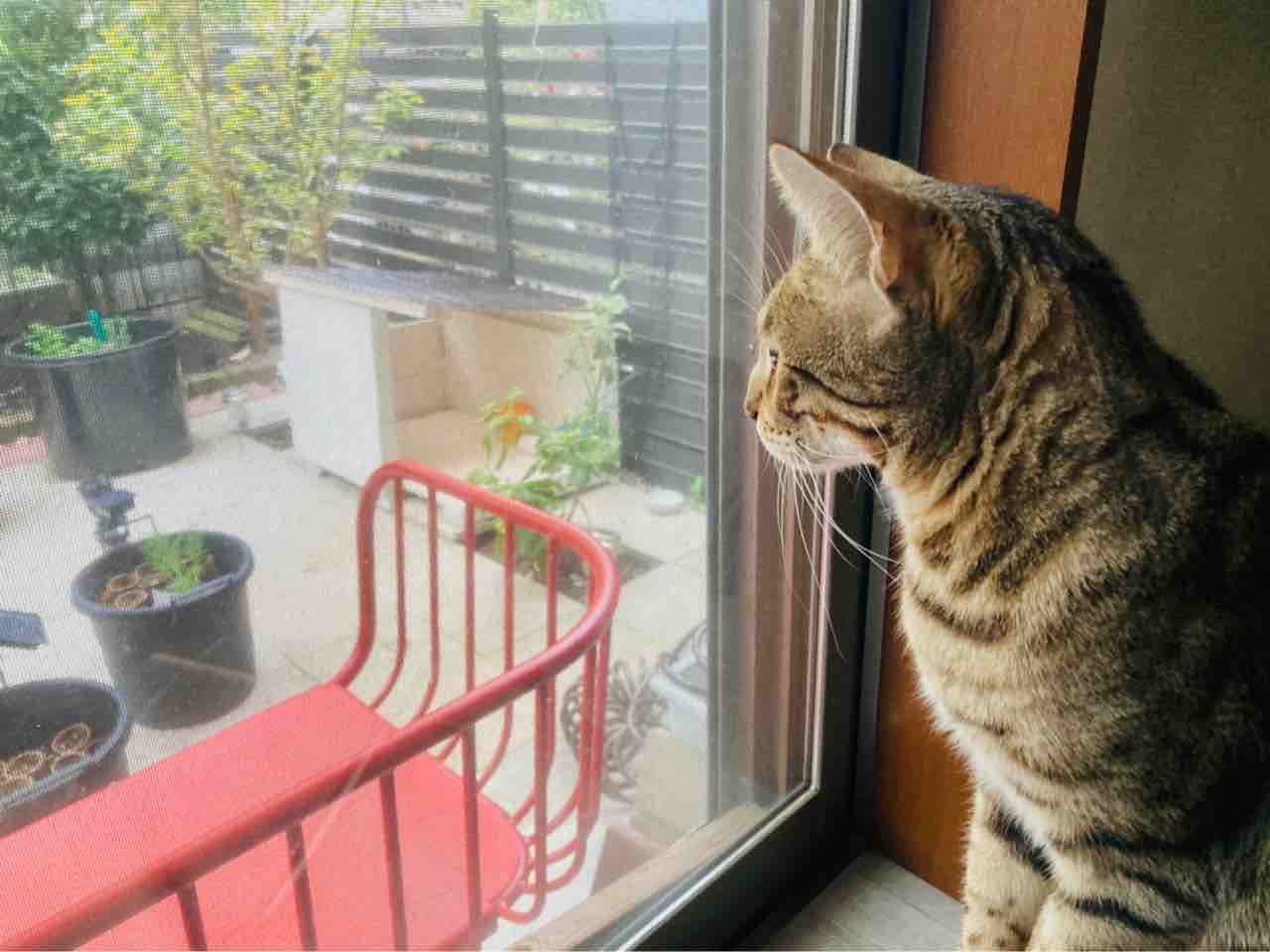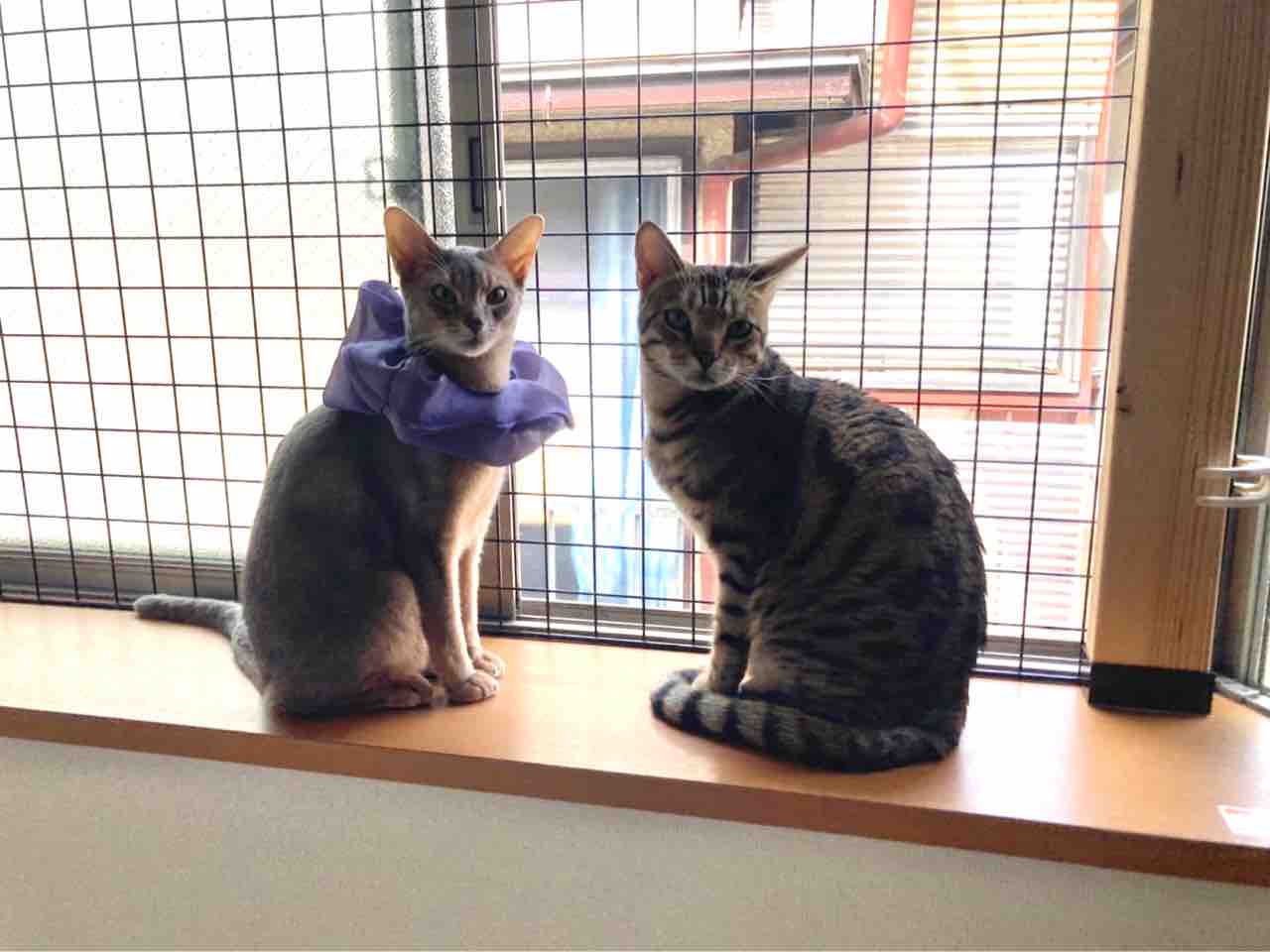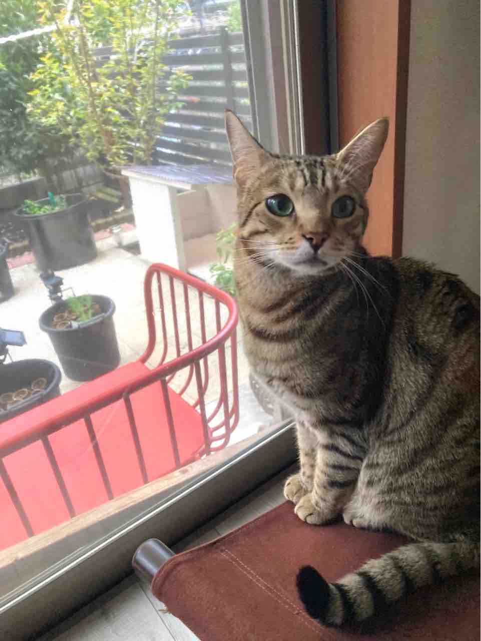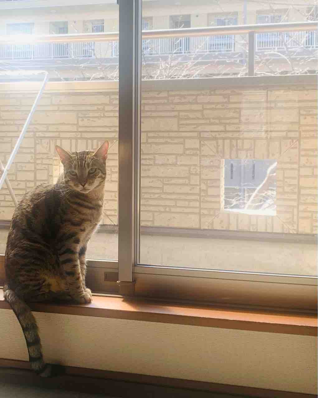 ジャミちゃんがベネリ君を追いかけ回して、出窓に追い詰めてました。