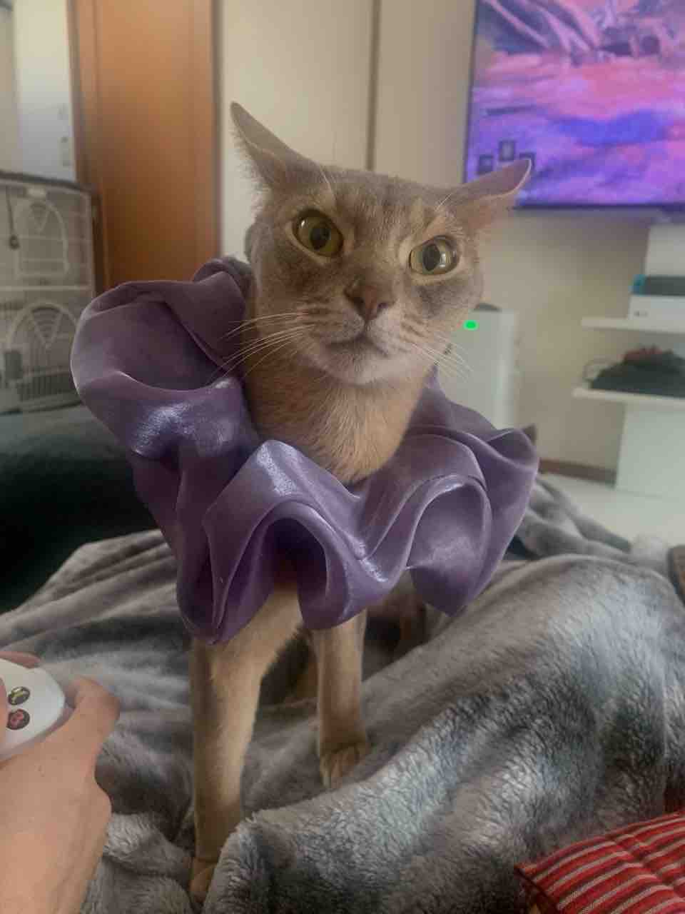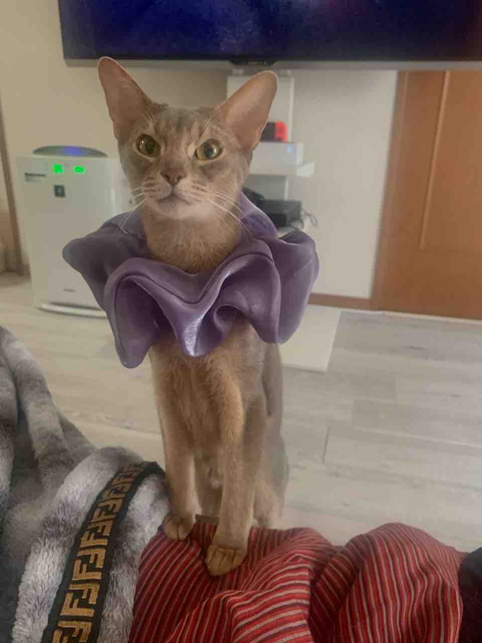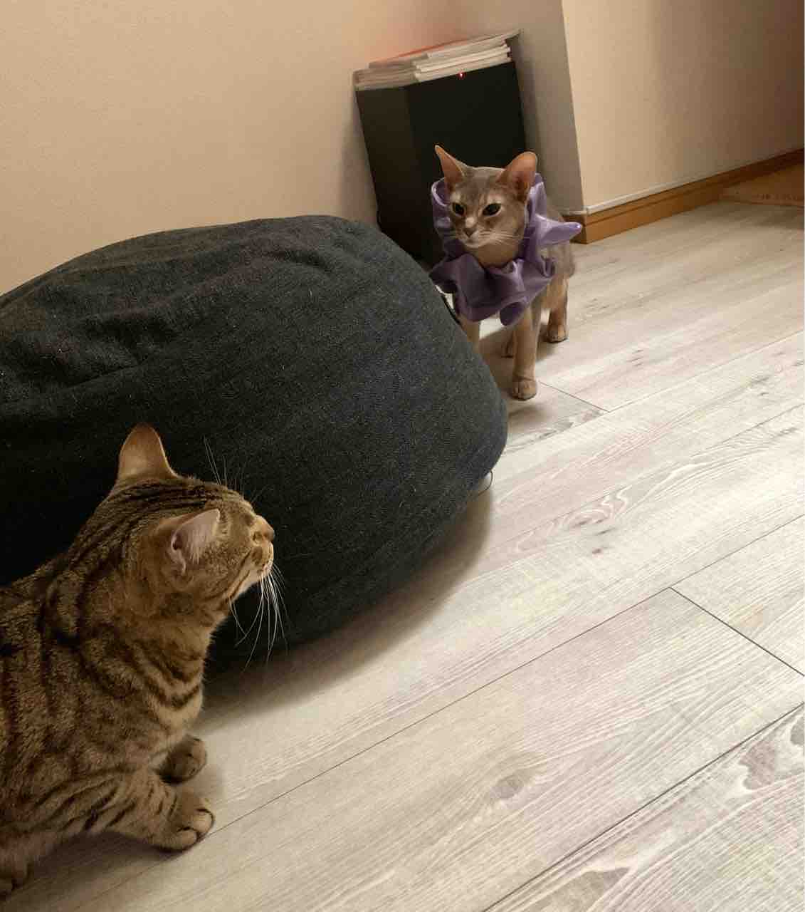 クッションの陰からお兄ちゃんに飛びかかろうと狙ってるジャミちゃん。
