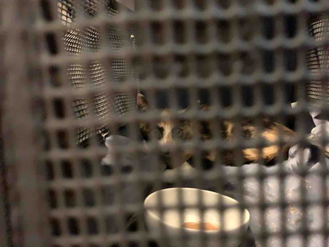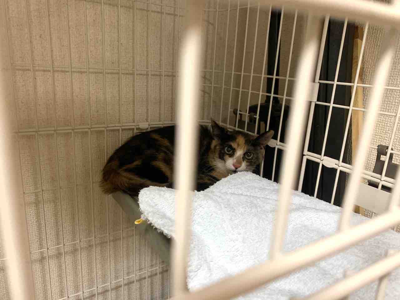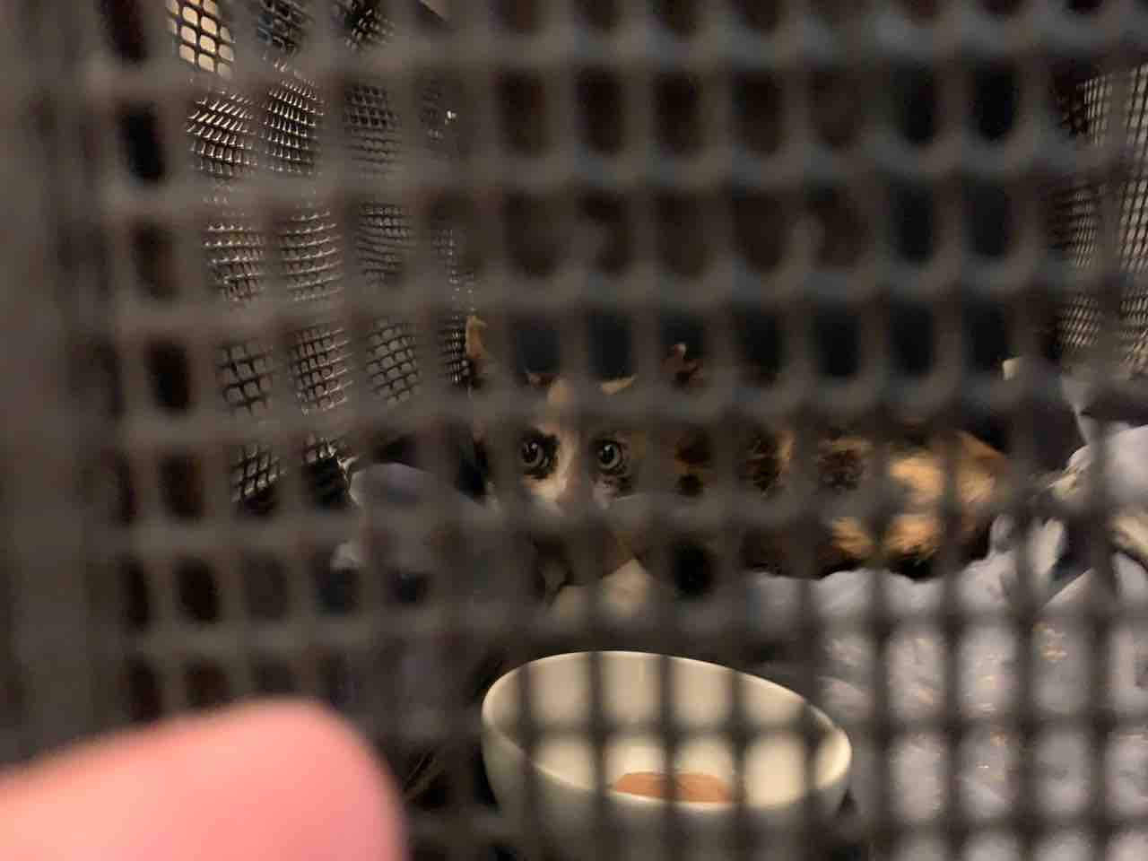 一旦後ろにズルズル降りて、出られないと分かったキャリコちゃん。