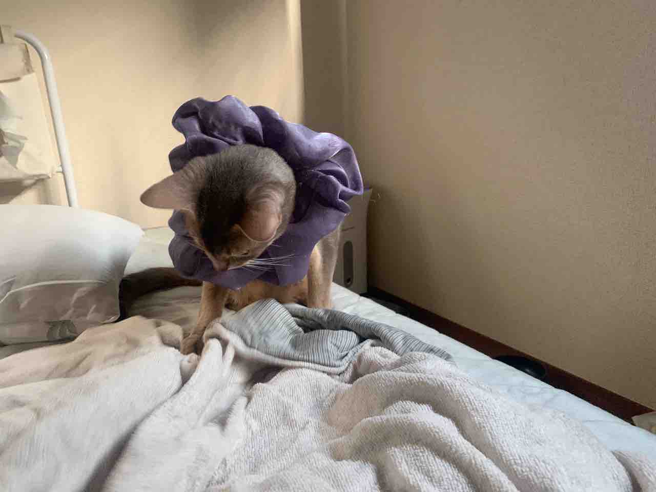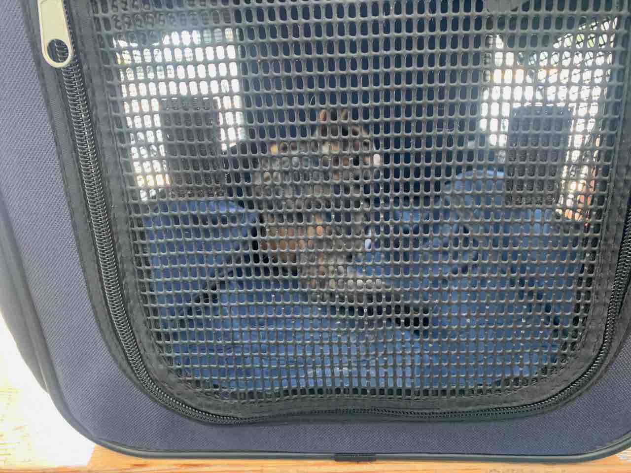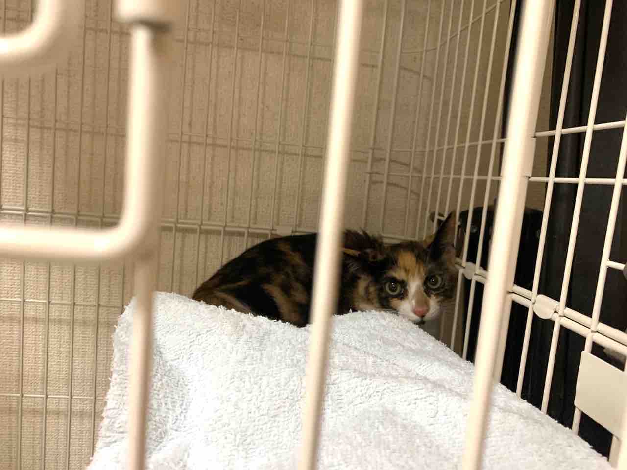 一旦後ろにズルズル降りて、出られないと分かったキャリコちゃん。