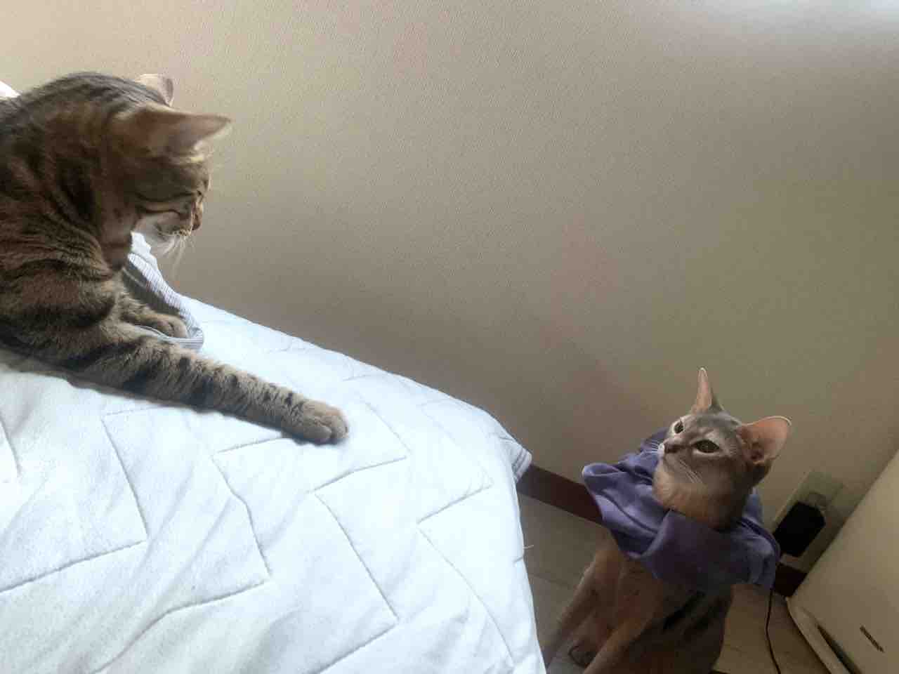 Calico:降りられないからキレぎみにゃん!