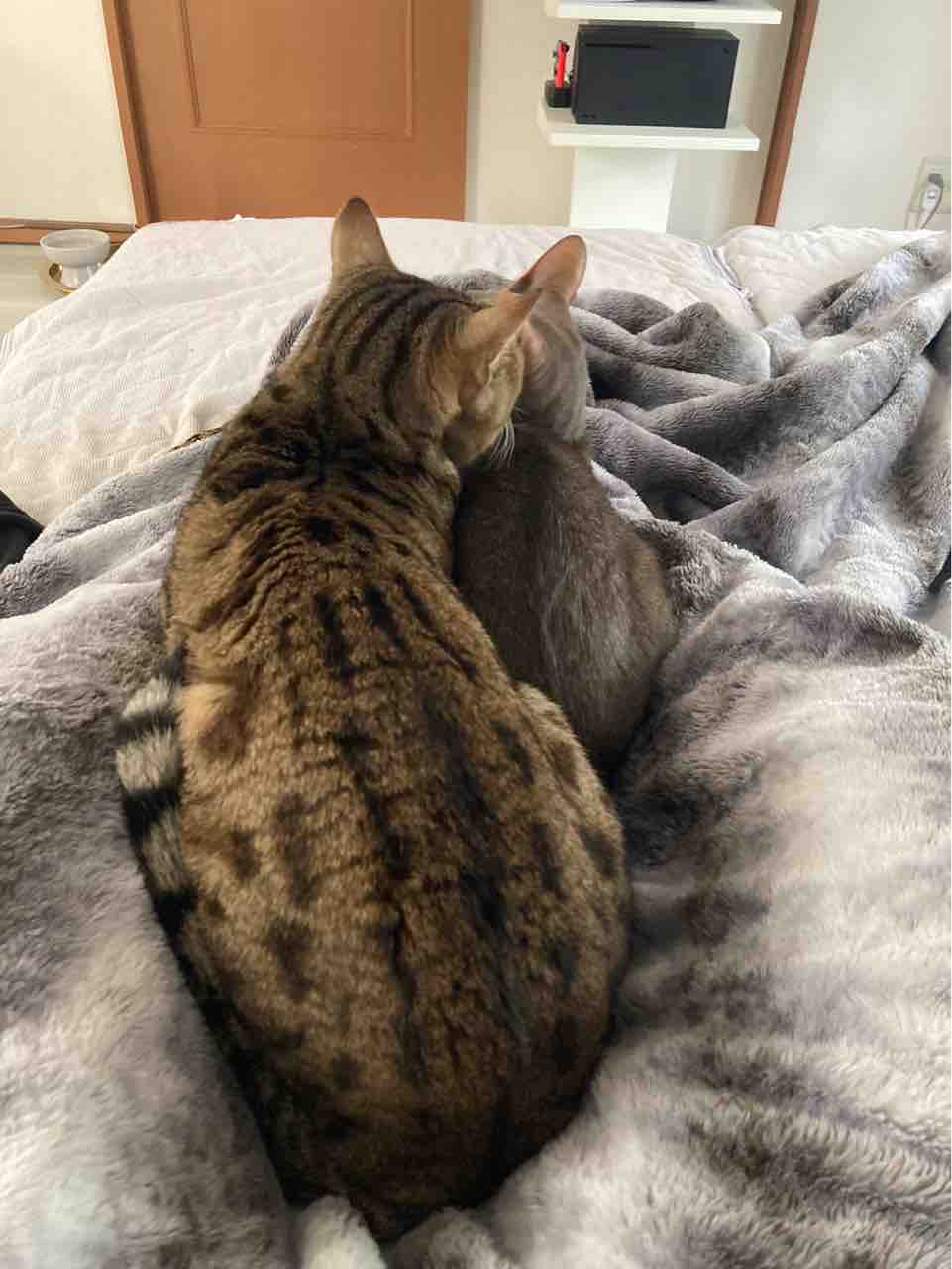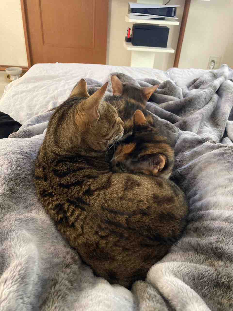 去年さくら耳(去勢済)になってからは、以前よりは喧嘩上等エプ太郎じゃなくなって、他の雄猫に穏やかになったかな?