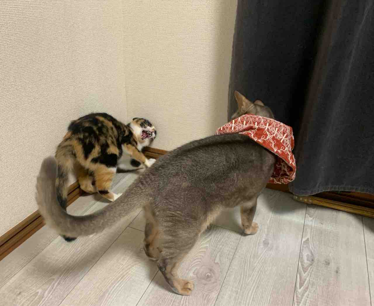 Benelli:ちびっこ、僕よりすごく小さかったはずなんにゃけどね…なんだか、だんだんマッスル系になってきてる気がするんにゃよね。