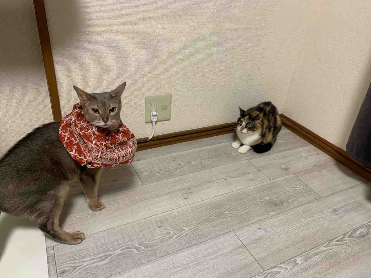 Jammy:僕、パラボラ(エリザベスカラー)つけてたから、それが筋トレになってたんにゃもん。気づいたら、僕の胸筋ムキッと逞しくて凄いんにゃもん。