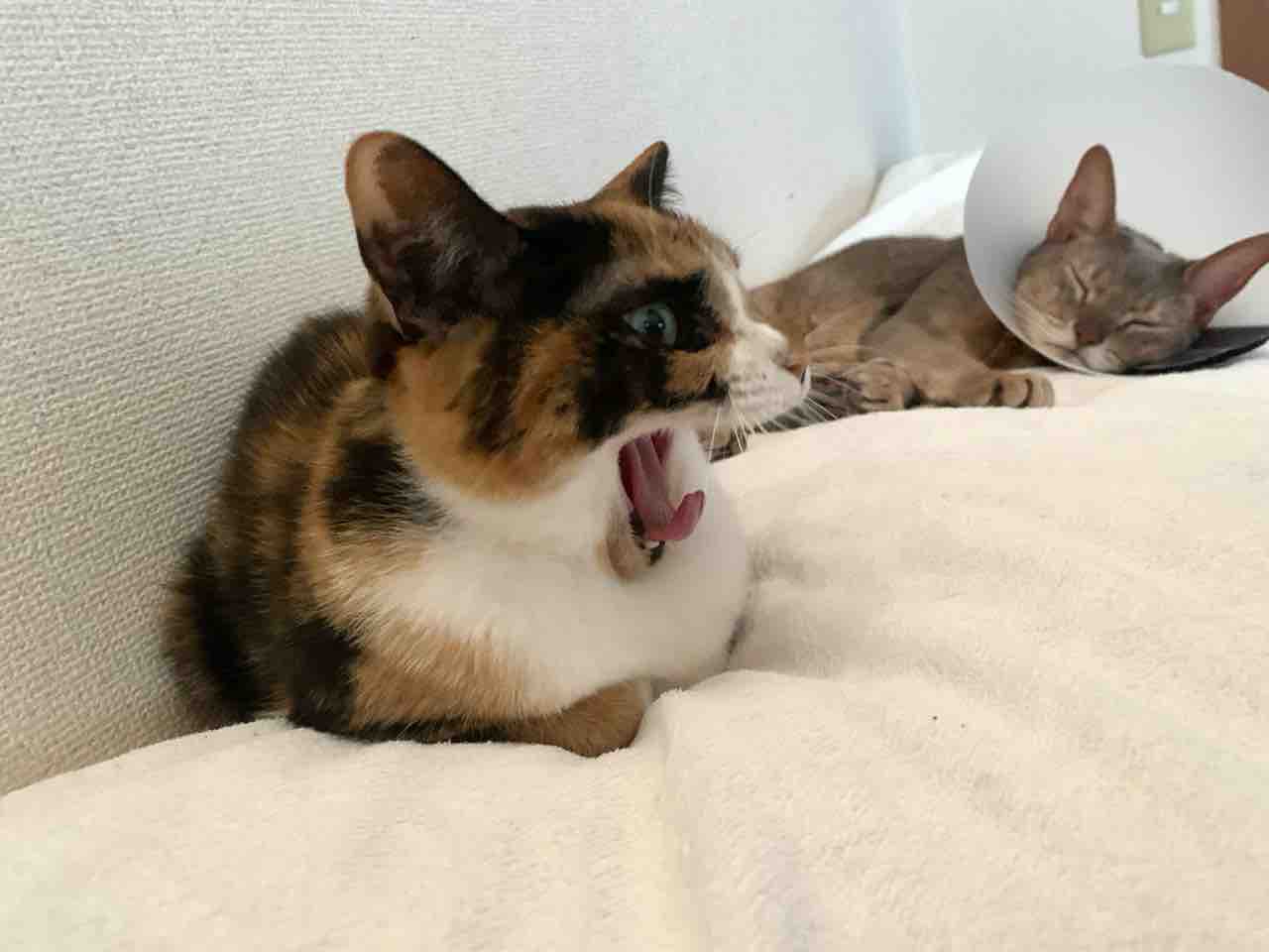 Calico:わたしは、お淑やかなお姫様だから大あくびなんてしないにゃんね。