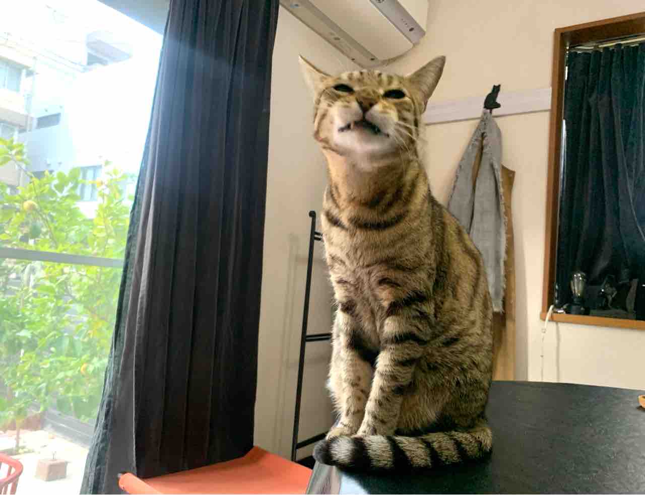 ポカポカしたお部屋で大あくび、幸せなお顔ですね。