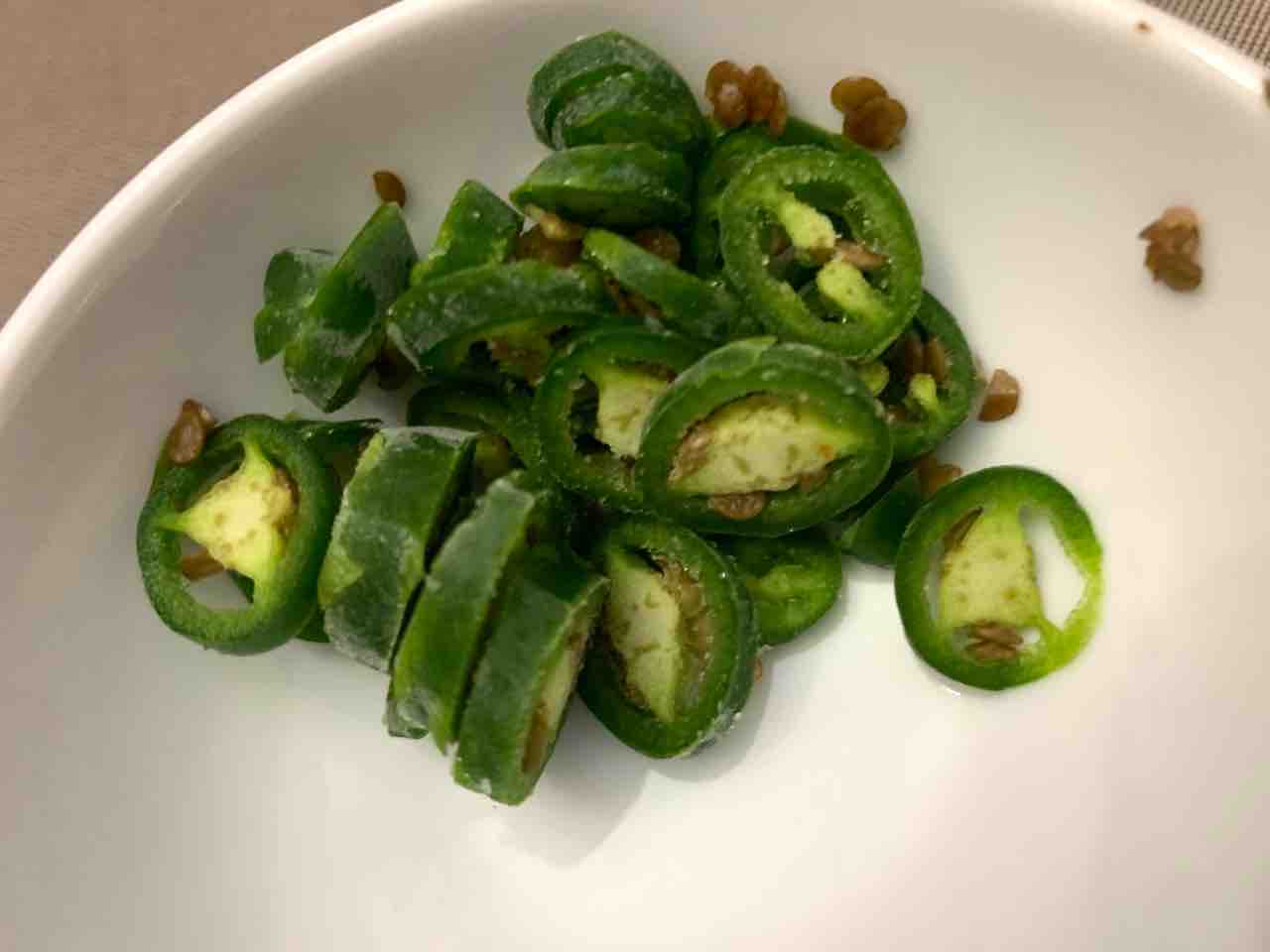 そして、トッピングには、我が家のお庭で夏に収穫して冷凍してあった小さな赤いハラペーニョを。