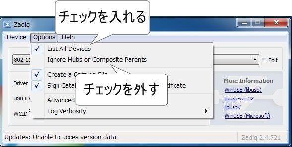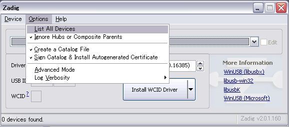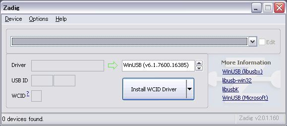 ・一部のWin8/Win10で→WinUSB(v6.1.7600.16385)の表示ではなく→WinUSB(v0.0.0.0)と表示される場合がありますが、インストールを続けて問題はないと報告されています。