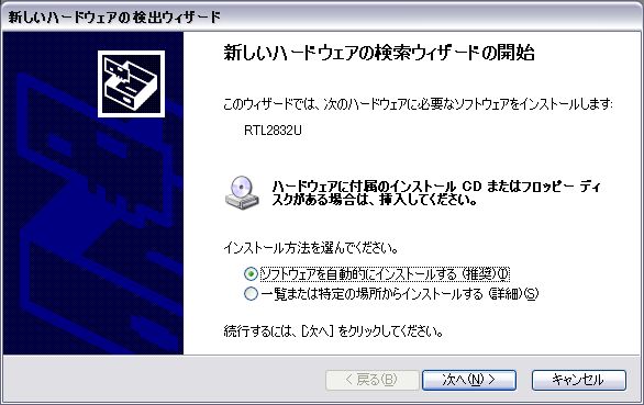 『新しいハードウェアの検出ウィザード』が開いた場合は、停止してください!正しく動作しない・・・等のコメントも無視です。では、②へ進んでください!・新しいハードウエアの検索ウィザードはキャンセルします。
