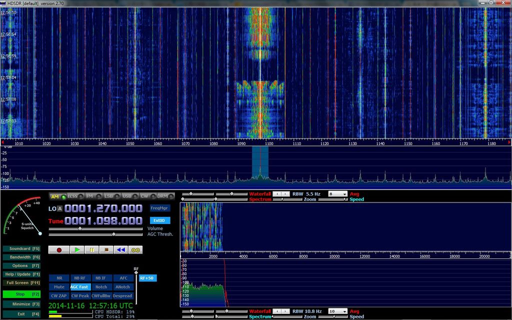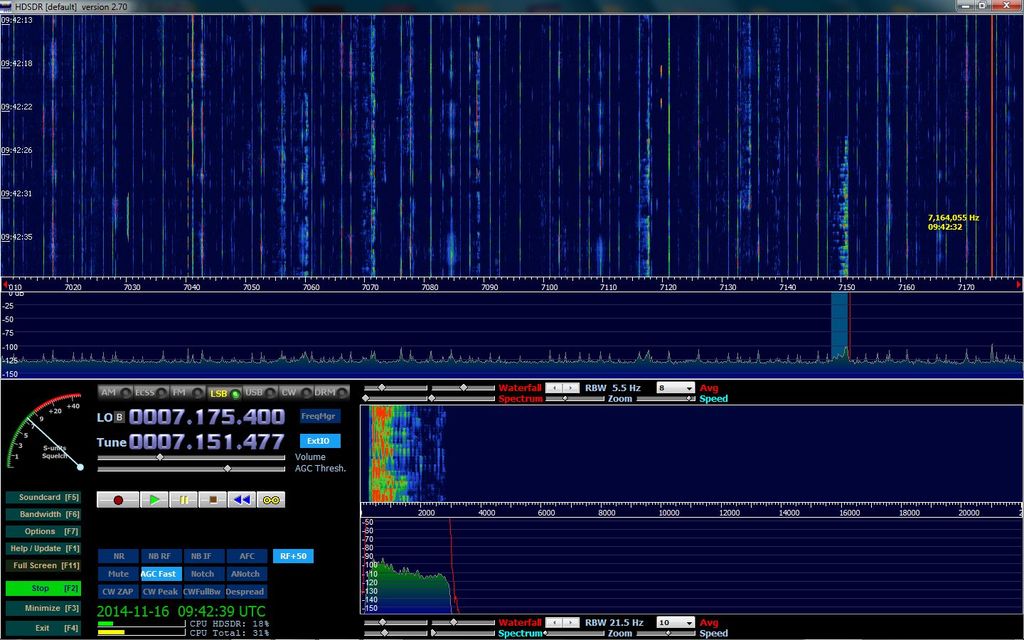 ゲインMaxで受信してみました。自宅があまりよい環境ではないこととマグネチックループアンテナのためゲインは低めですが、しっかり受信が出来ています。特に邪魔なスペクトルも出ていないようです。