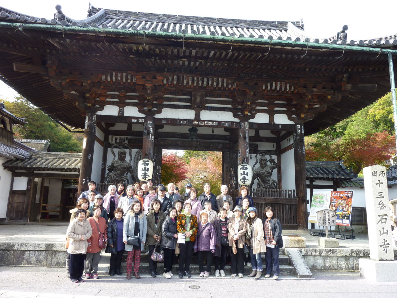 11月16日の日曜日、尾北民商婦人部恒例のバスハイクが、今年も40名の参加で行なわれました。今年は、色彩の華やかさに誘われて、石山寺、お色直しをした宇治の平等院、醍醐寺を巡りました。