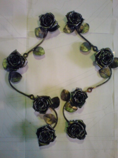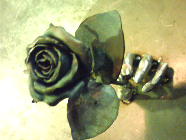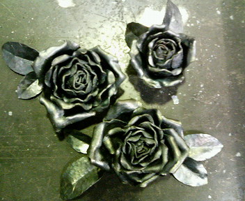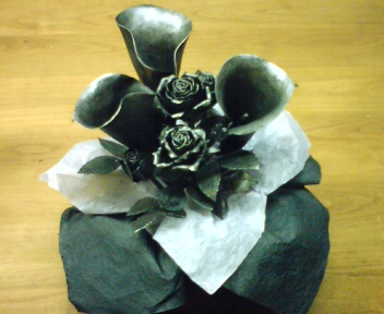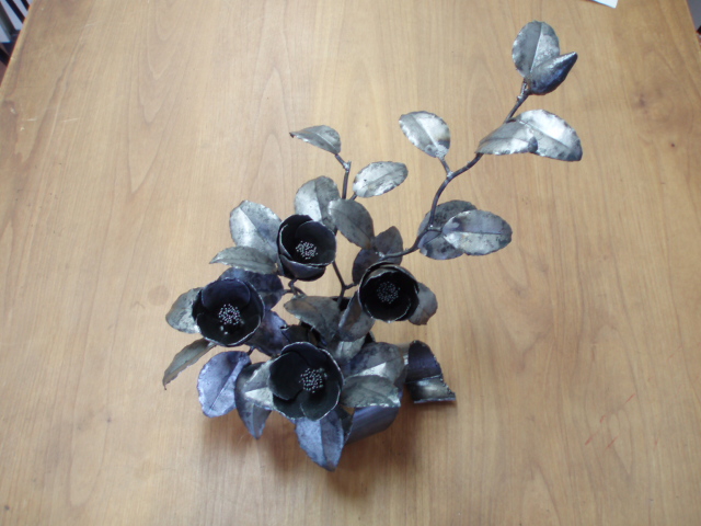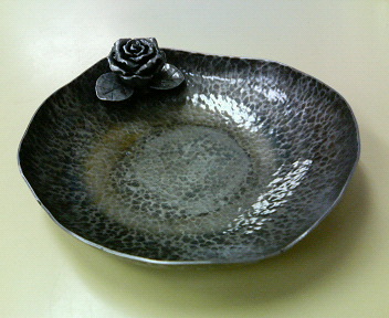 鉄板を叩いて作った器に薔薇の組み合わせ♪