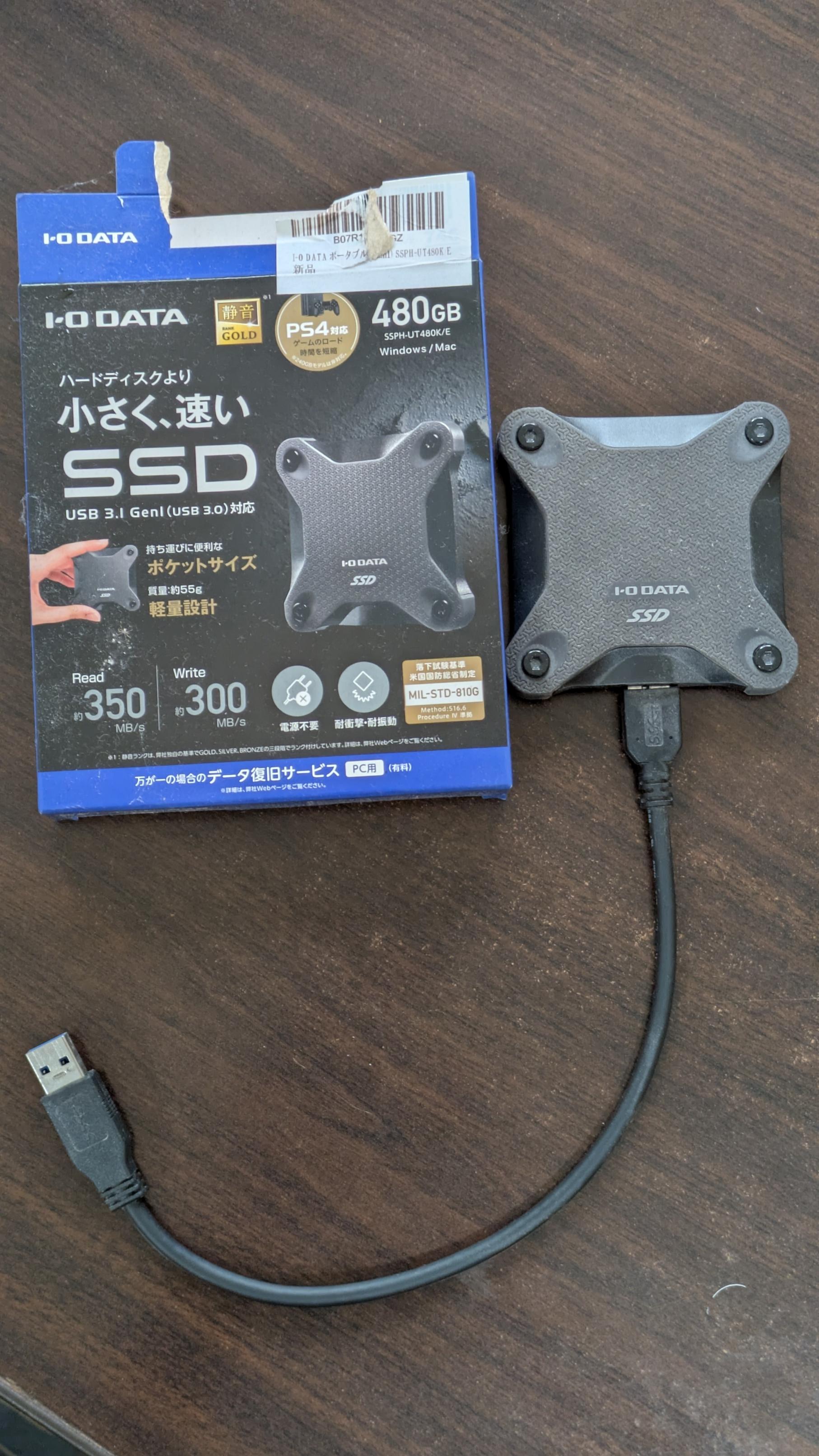 なんでSSDにしたのかって言うと電源が不要で取り回し楽ちんだからだな
