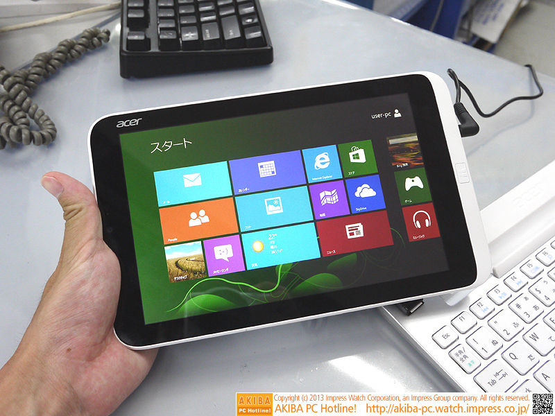 「片手持ち」での操作も可能な8.1インチのWindows 8タブレットが登場、Acerの「Iconia W3(W3-810)」が発売された。
