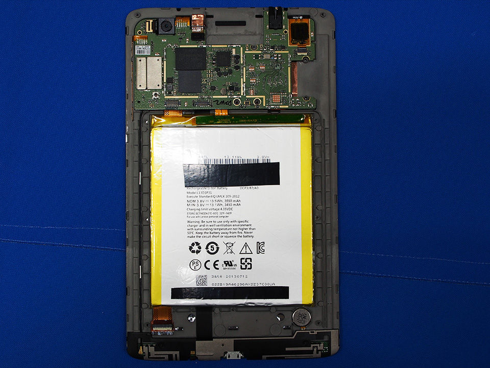 スペックは、1.2GHzのクアッドコアプロセッサ(MediaTek MT8125)、1Gバイトのメモリー、32Gバイトのストレージを搭載する(写真5)。microSDには対応しない。ディスプレイは7インチ・1280×800ドットで、視野角の広いIPS液晶を採用した。フロントカメラは160万画素でリアカメラは500万画素となる。