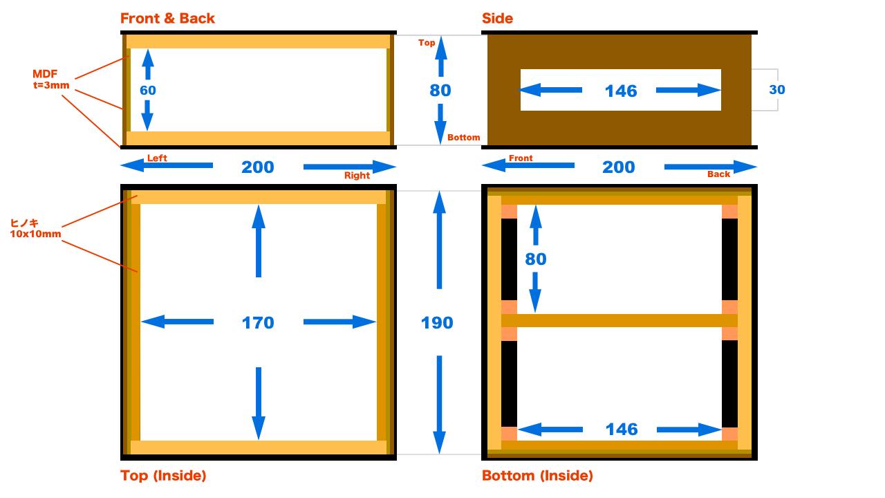 組み立ての際には四隅を楊枝ダボでしっかりと接合し、裏側にも補強板を接着。