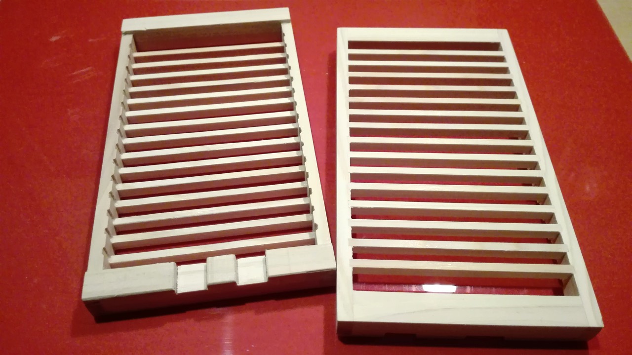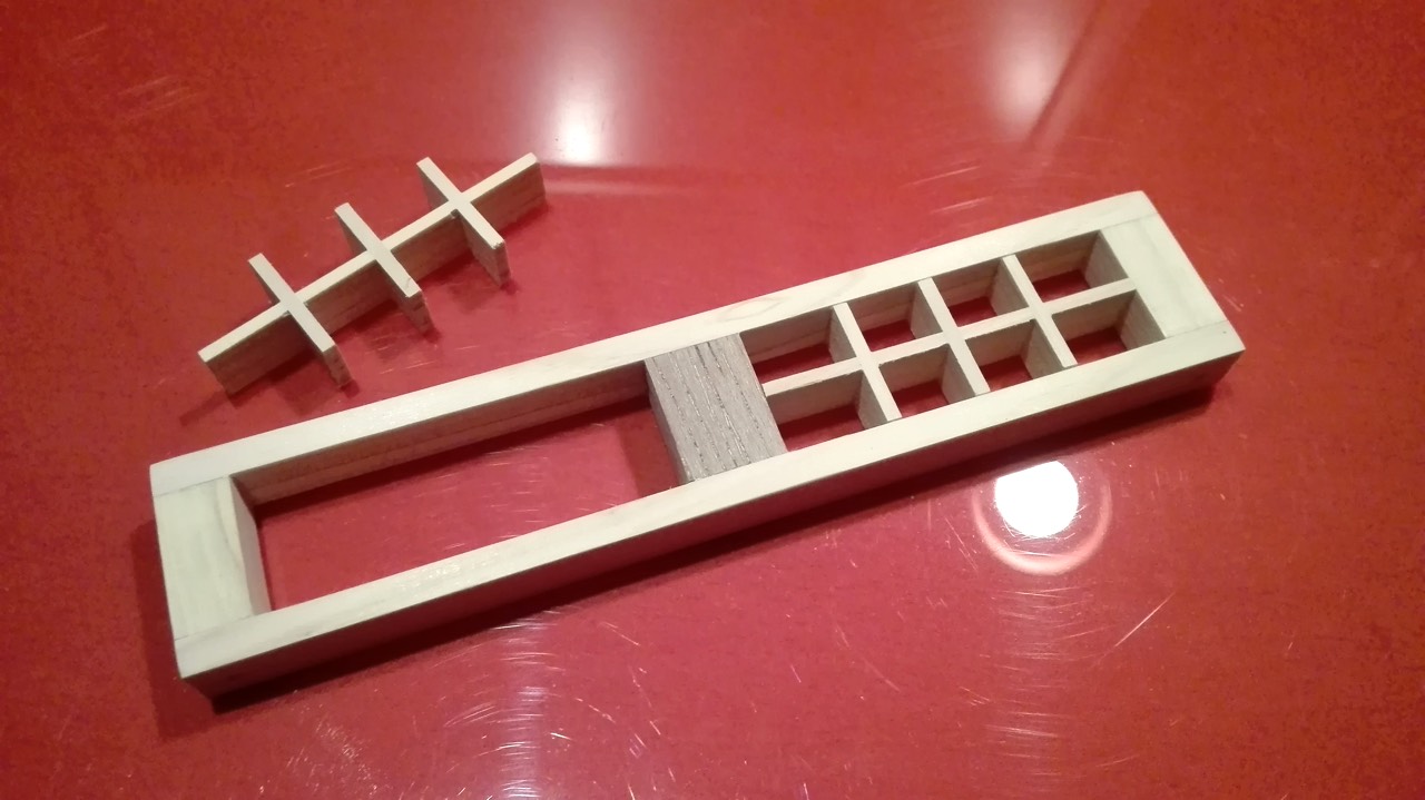側板用に木組みでミニ格子を。組子をやってみたかったけど断念。
