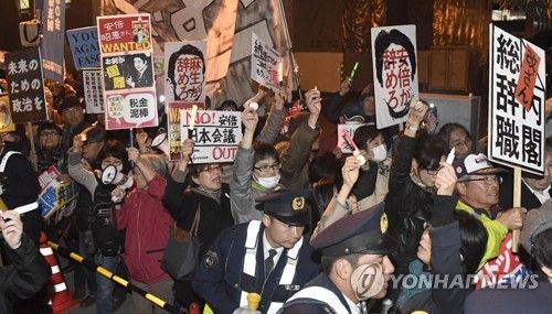 (東京=連合ニュース)キムジョンソン特派員=安倍晋三日本の首相の私学スキャンダルと関連した財務省の文書操作に抗議する集会が30日夜、東京にある首相官邸前と国会周辺で開かれたと共同通信が伝えた。 報道によると、集会の参加者は、文書操作疑惑の核心人物で、最近、国会に召喚された佐川宣壽前国税庁長官の証言拒否で「疑惑だけ大きくなった」とし安倍首相の関与の有無に対する徹底した追及を要求した。 集会には、主催側の発表で1万2千人余が参加した。 NHKはこの日、国会周辺で社会関係網サービス(SNS)などでの勧誘で集まった個人などが、大規模な抗議活動を行ったと報道した。 参加者は、「内閣は総辞職せよ」などの文句が書かれたプラカードを持って、「説明責任を適切に履行せよ」などのスローガンを叫んだ。 これらは安倍首相夫人昭恵女史などに対する国会証人召喚も要求した。 家族4人が参加したという40代の男性は「文書を操作して、まともに説明もしない政府を信頼できない」とし「真相を明らかにすることを願う」とNHKに語った。 東京に住んでいる武藤千鶴(60)氏は、「佐川前長官が重要な問題について何も話さないだろうと思ってはいた」とし「もう検察の捜査に期待するしかない」と通信に語った。 3人の子供のいる40代の参加者は、「世の中がますます変な方向に行くようだ」とし「子供たちを考えると、私たちの世代で何かしなければならない」と通信に話した。 この日の集会には、野党議員も参加し、「市民と野党の共同闘争で政治の流れを変えて、内閣を追い詰めよう」と話したりもしたと通信は付け加えた。 http://v.media.daum.net/v/20180331000456329 http://news.naver.com/main/read.nhn?mode=LSD&mid=sec&sid1=104&oid=001&aid=0009994844 |