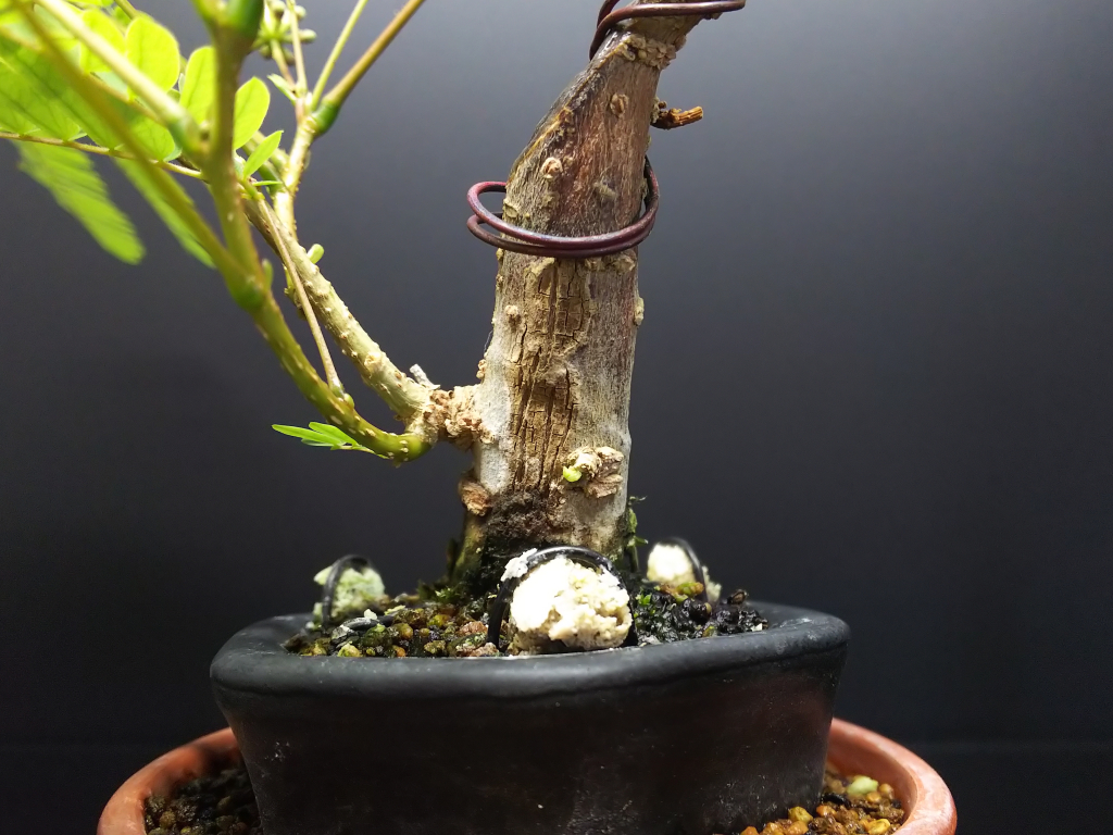 通常ネムの木は実生10年程で開花と言われている為、短期な凡盆栽人は一才性のものを購入。